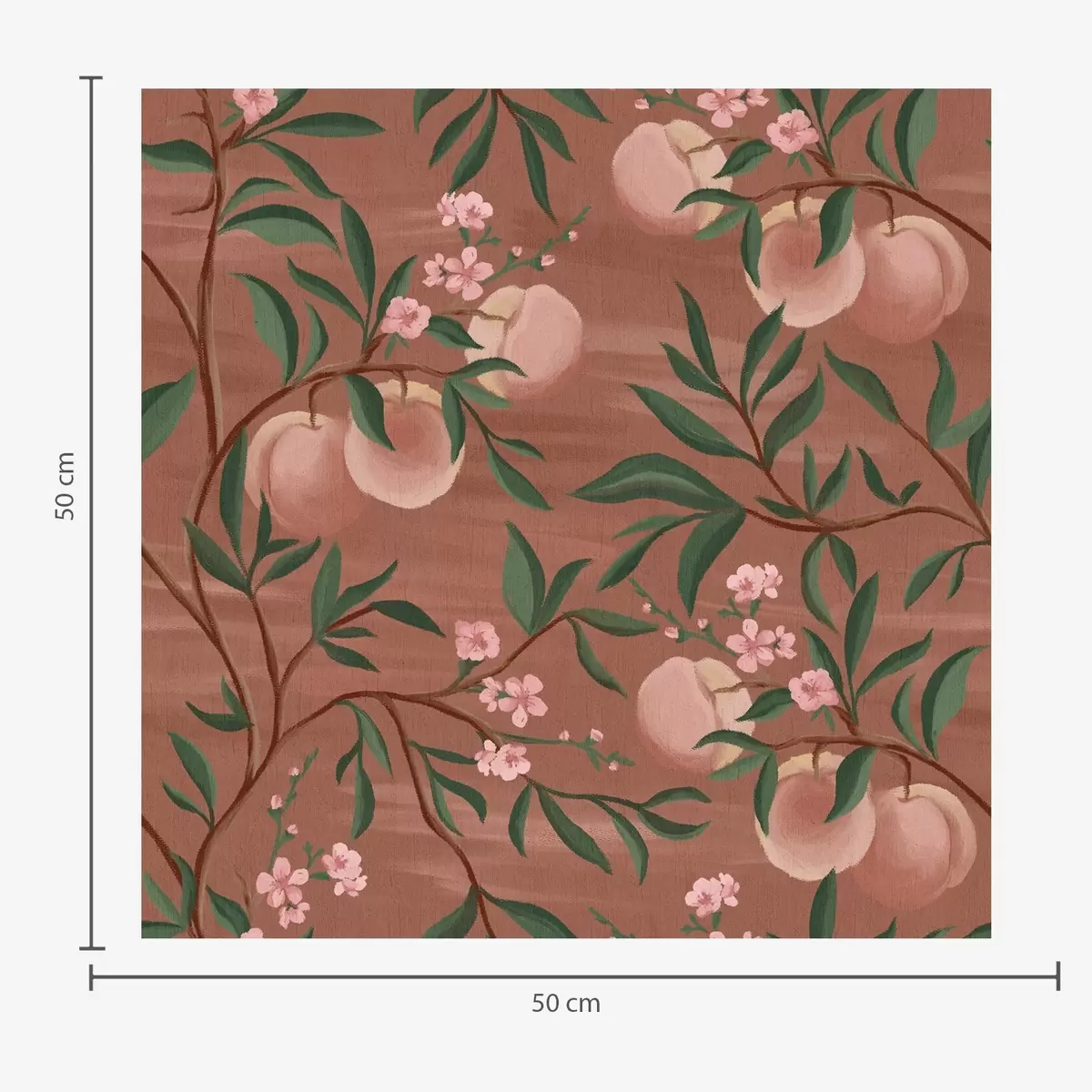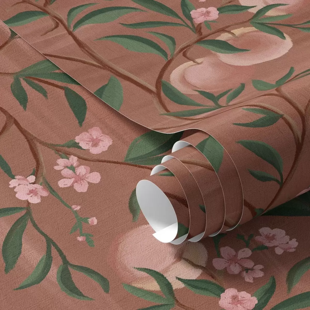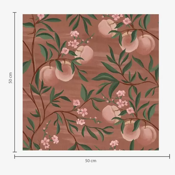 Tapeta Broskyne na konároch s ružovými kvetmi, terakotová zem Nr. a00856