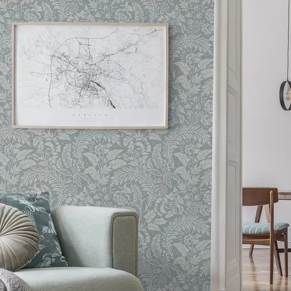 Tapeta Monochromatický kvetinový vzor na šedo-modrom pozadí Nr. a00859