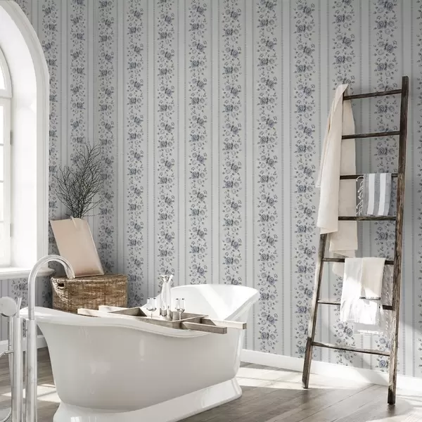 Tapeta Modré ruže vo vertikálnych pásoch na svetlom pozadí Nr. a00860