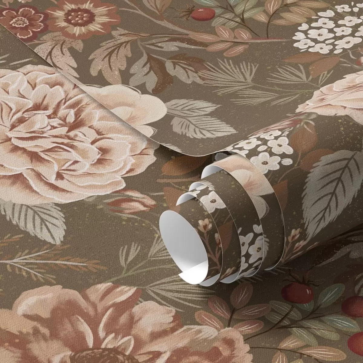 Tapeta Teplé ruže a bobule na hnedom pozadí Nr. a00868