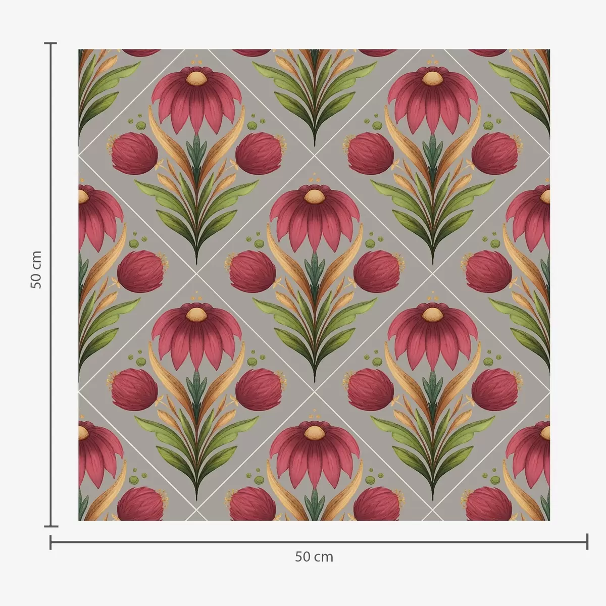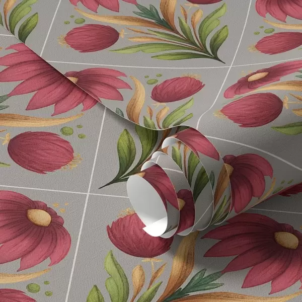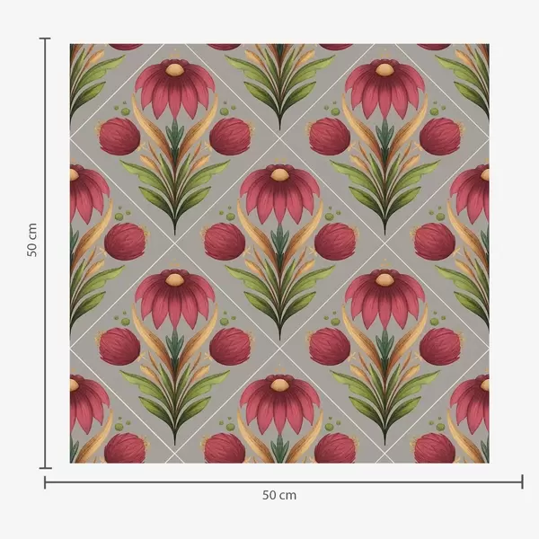 Tapeta Symetrický kvetinový ornament na sivom pozadí s diagonálami Nr. a00869