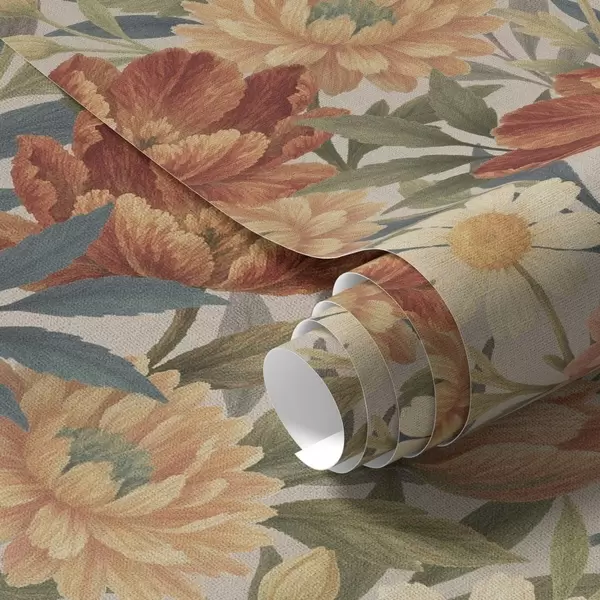 Tapeta Vintage záhrada kvitne v teplých terakotových a broskyňových farbách Nr. a00874