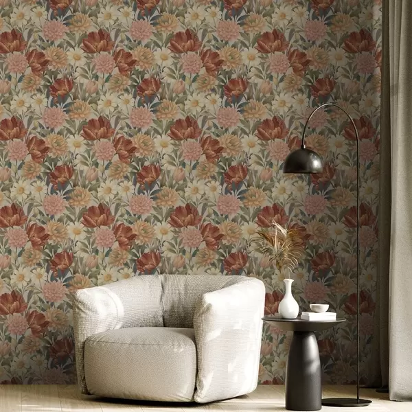 Tapeta Vintage záhrada kvitne v teplých terakotových a broskyňových farbách Nr. a00874