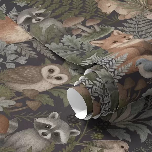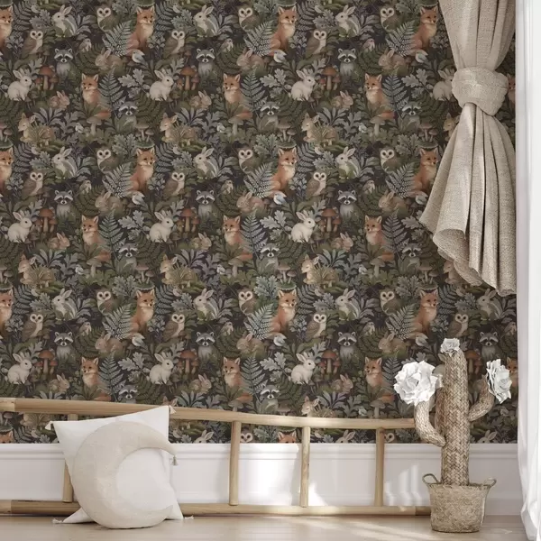 Tapeta Lesné zvieratá a paprade na tmavom uhlí Nr. a00880