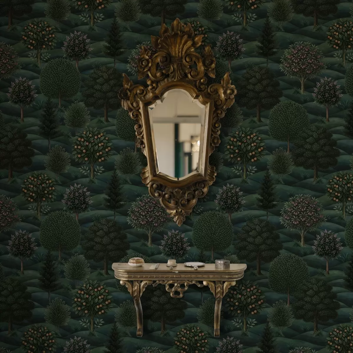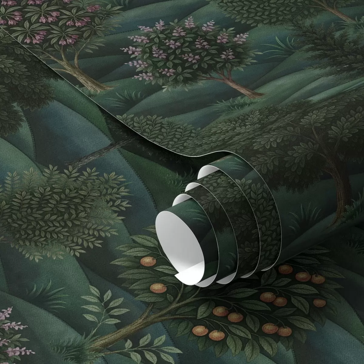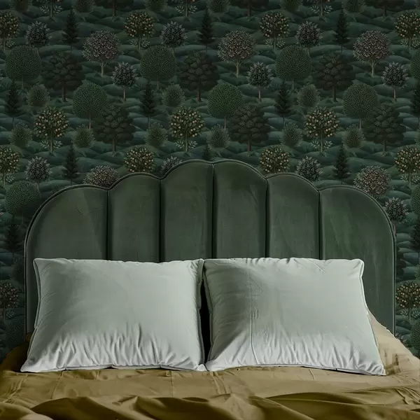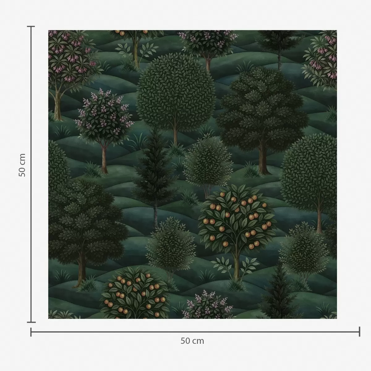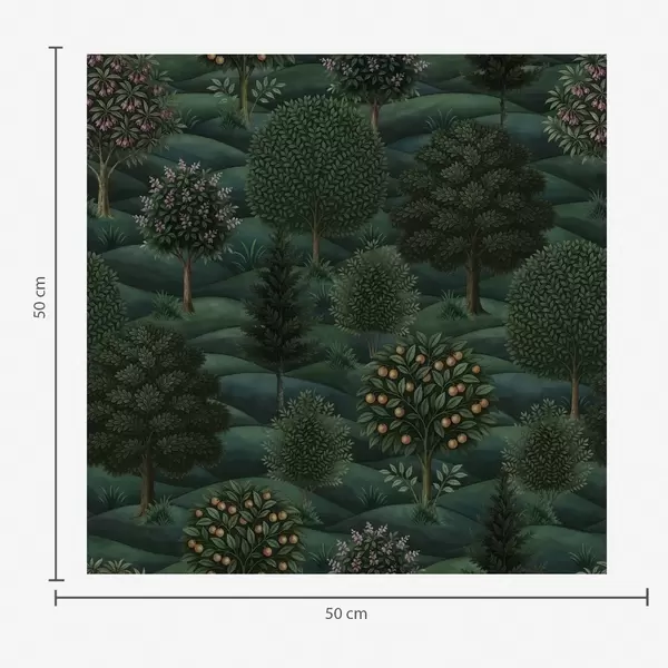 Tapeta Bohatá zelená kopcovitá krajina s vzorovanými stromami Nr. a00892