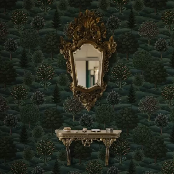 Tapeta Bohatá zelená kopcovitá krajina s vzorovanými stromami Nr. a00892