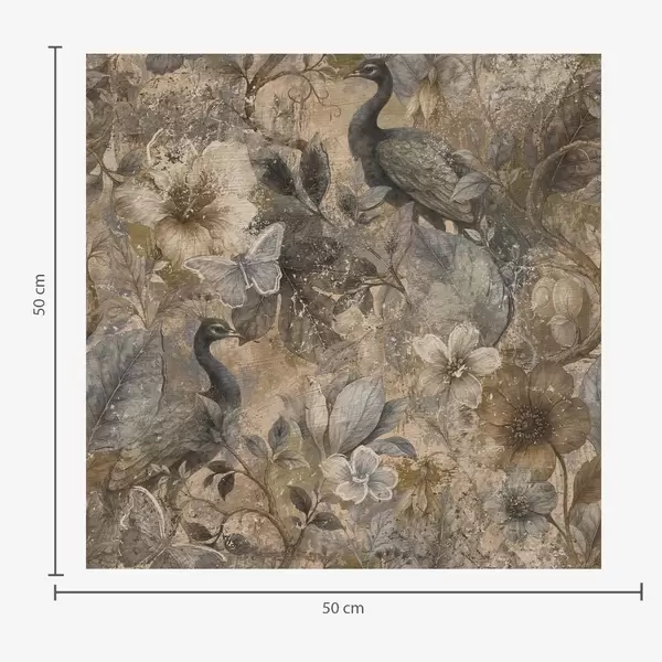 Tapeta Starobylá kvetinová koláž s pávmi a motýľmi Nr. a00897