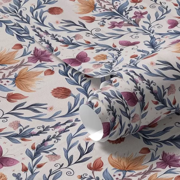Tapeta Kvetinový damask s motýľmi v tmavomodrej a terakotovej farbe na bielom podklade Nr. a00926v1