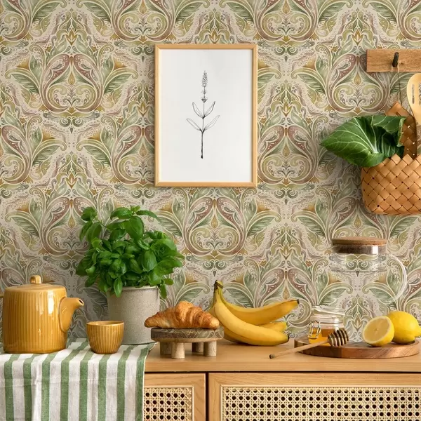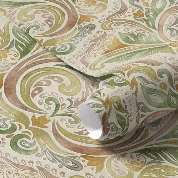 Tapeta Akvarelové listové víry v zelených a teplých okrových odtieňoch Nr. a00927