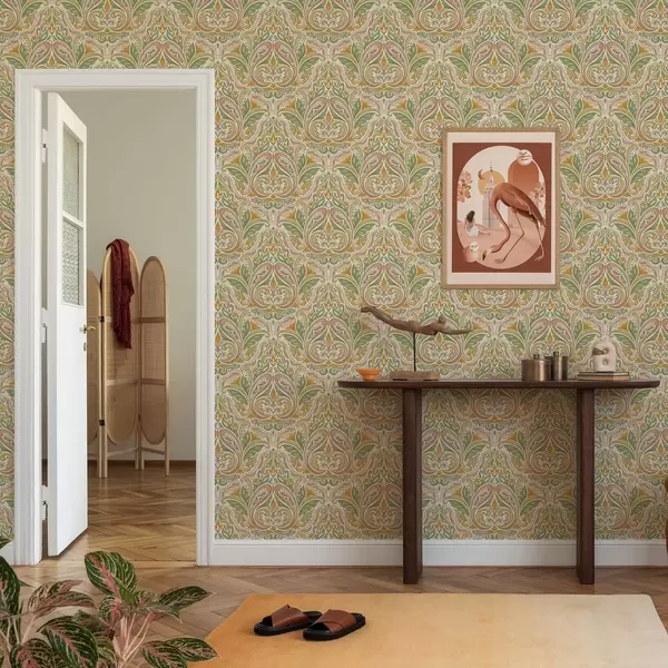 Tapeta Ozdobné listové víry v zelených a terakotových odtieňoch Nr. a00927v1