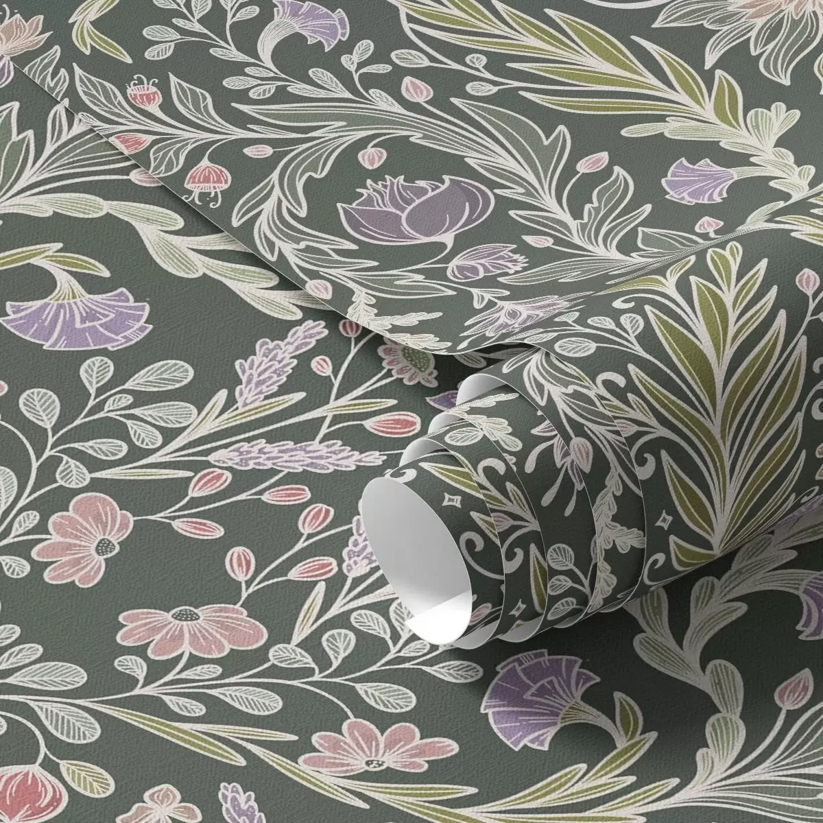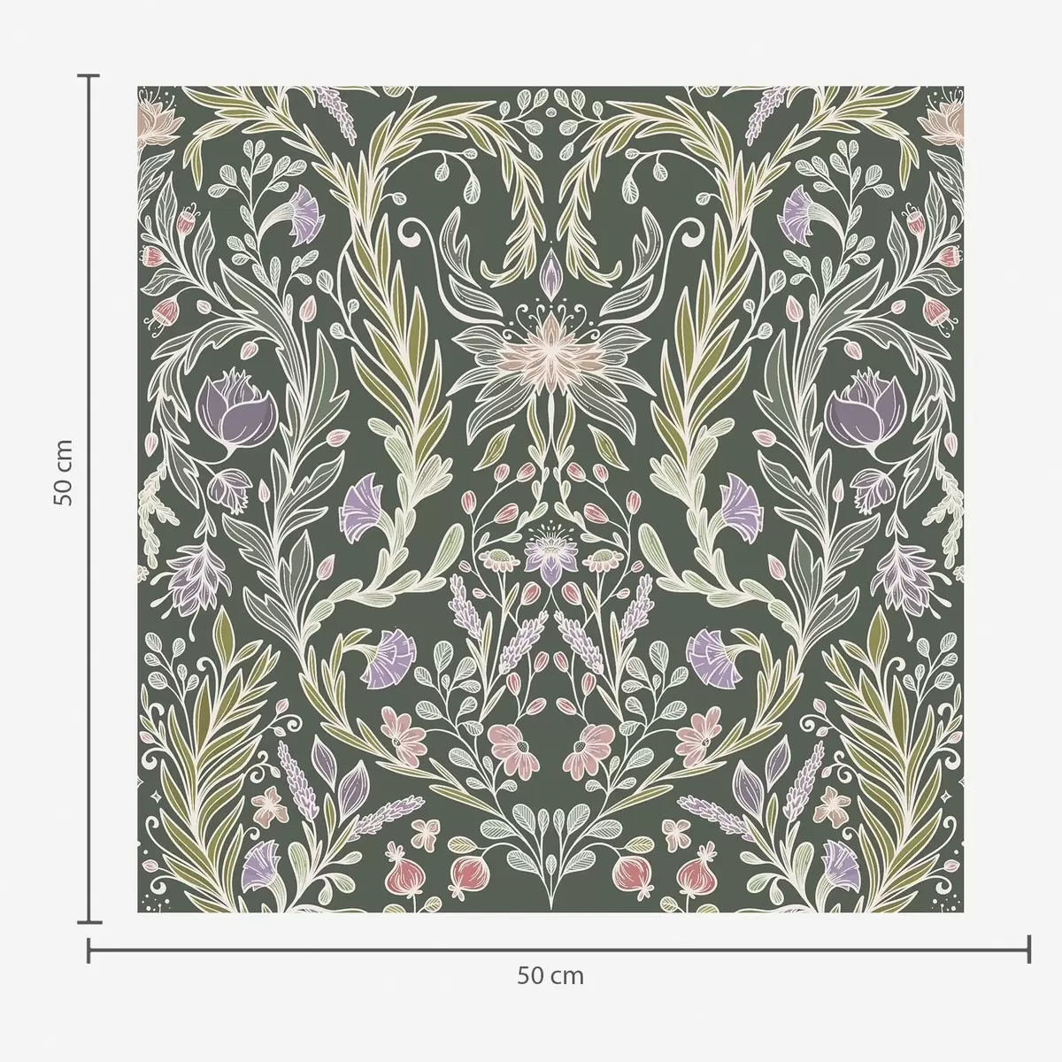 Tapeta Symetrický kvetinový ornament na tmavozelenom pozadí Nr. a00928