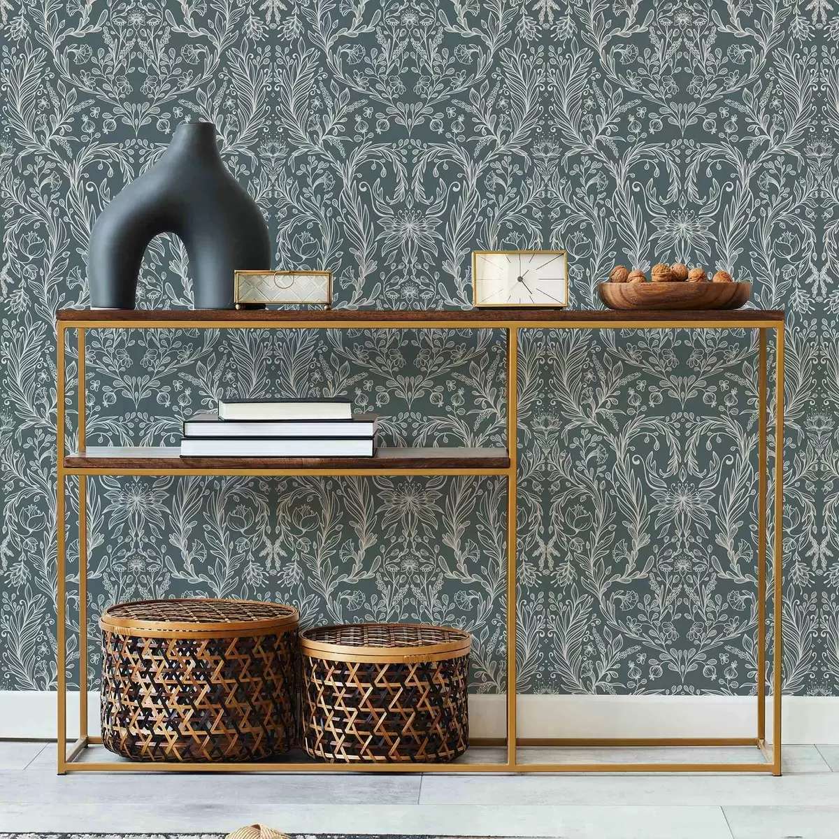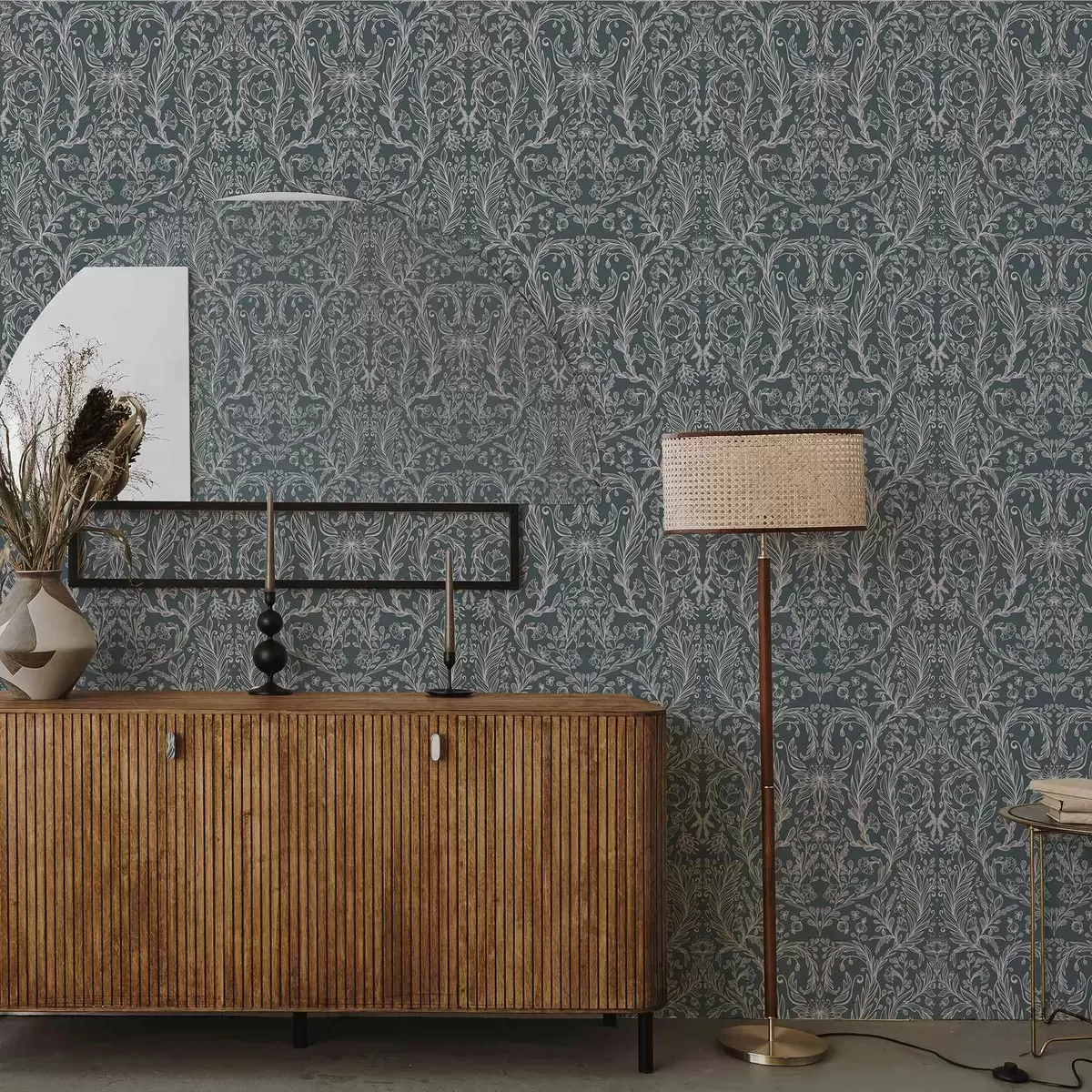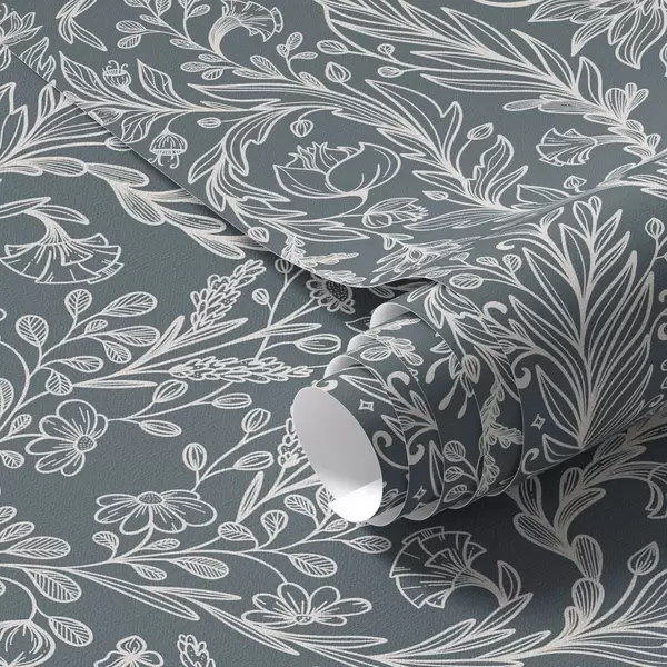 Tapeta Lineárny kvetinový ornament na modro-sivom pozadí Nr. a00929v1