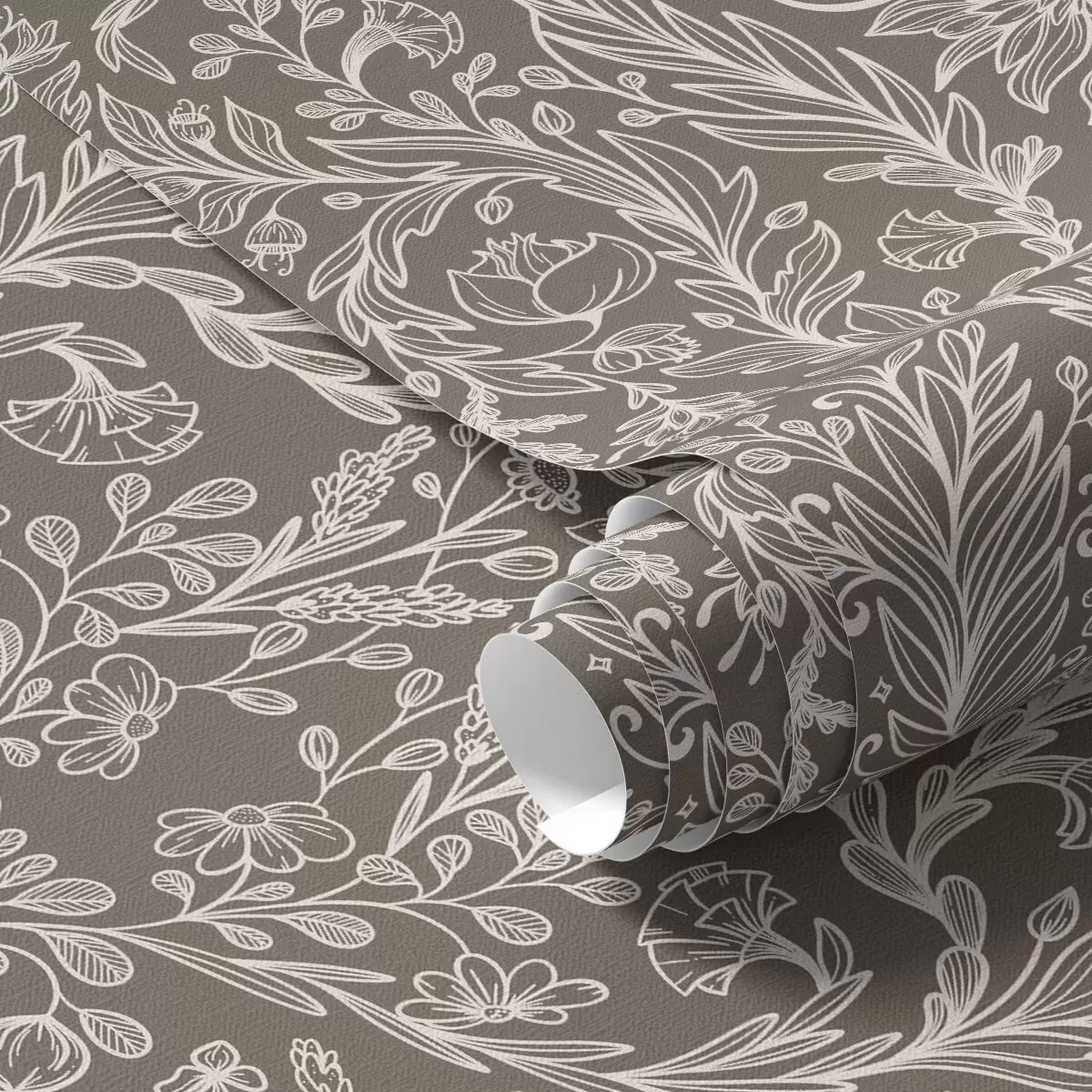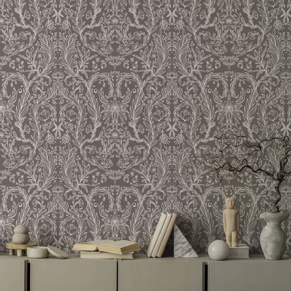 Tapeta Monochromatický botanický vzor na teplom hnedom podklade Nr. a00929v2