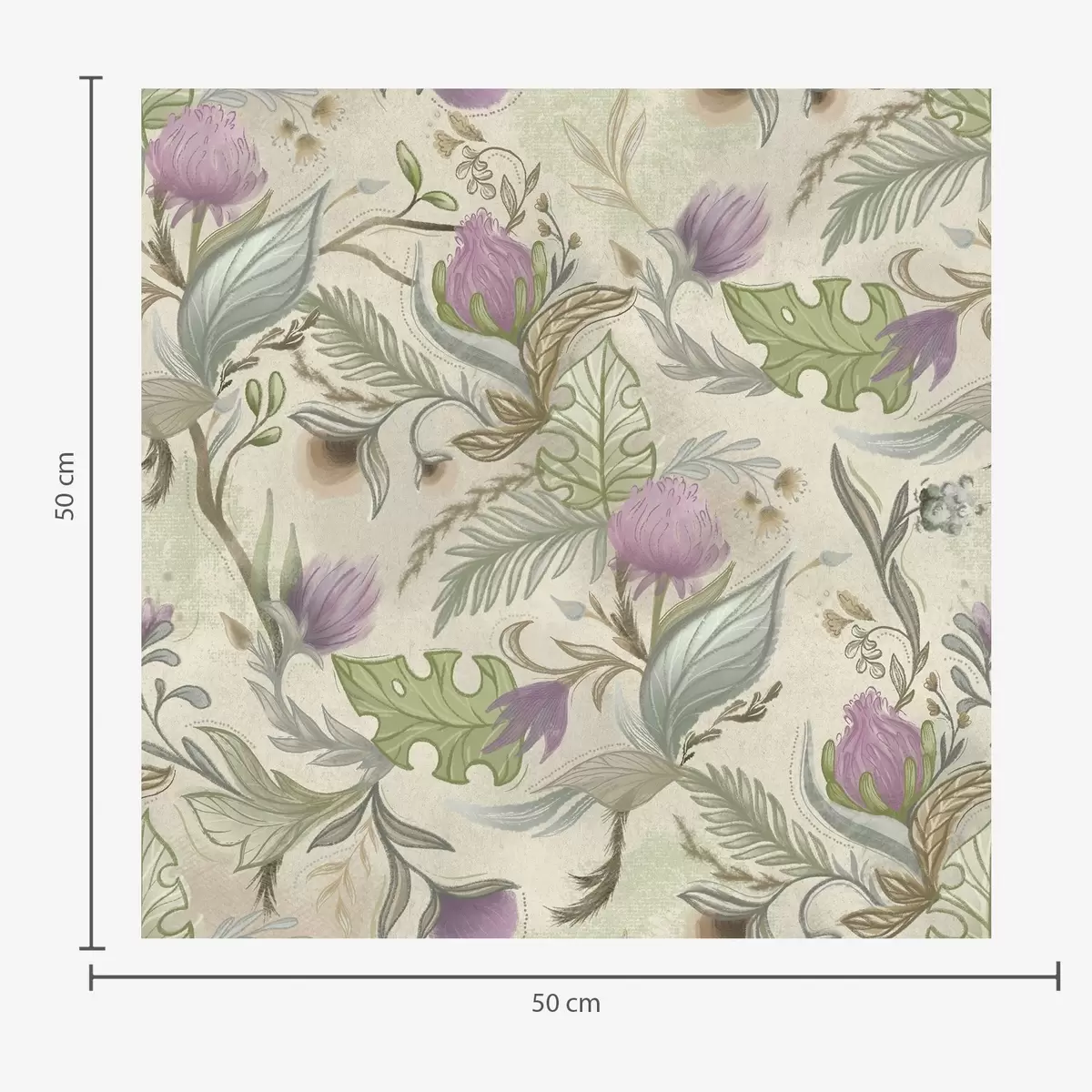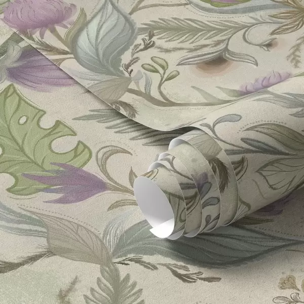 Tapeta Lila púčiky a jemná zeleň na smotanovom pozadí Nr. a00930v2