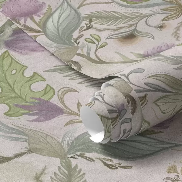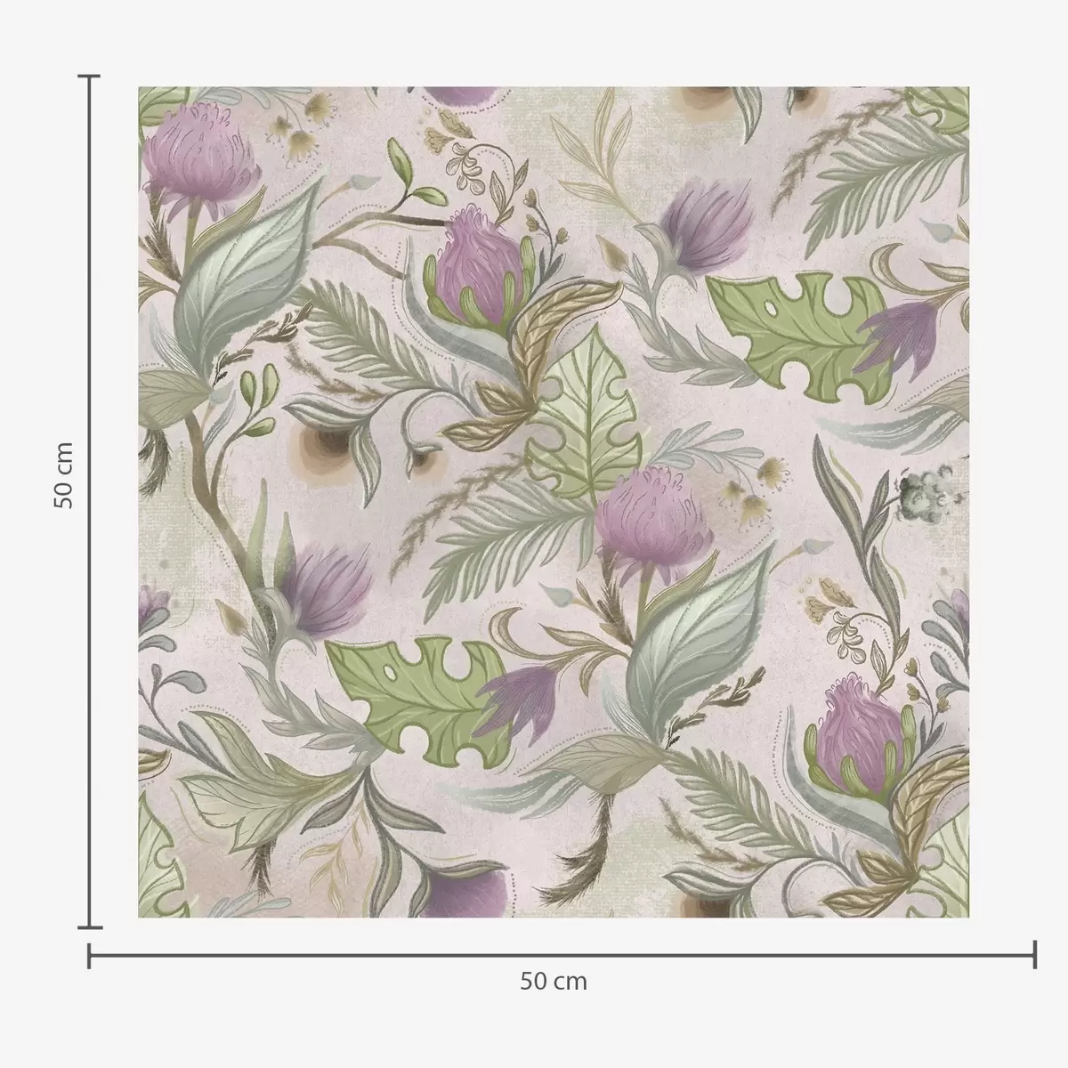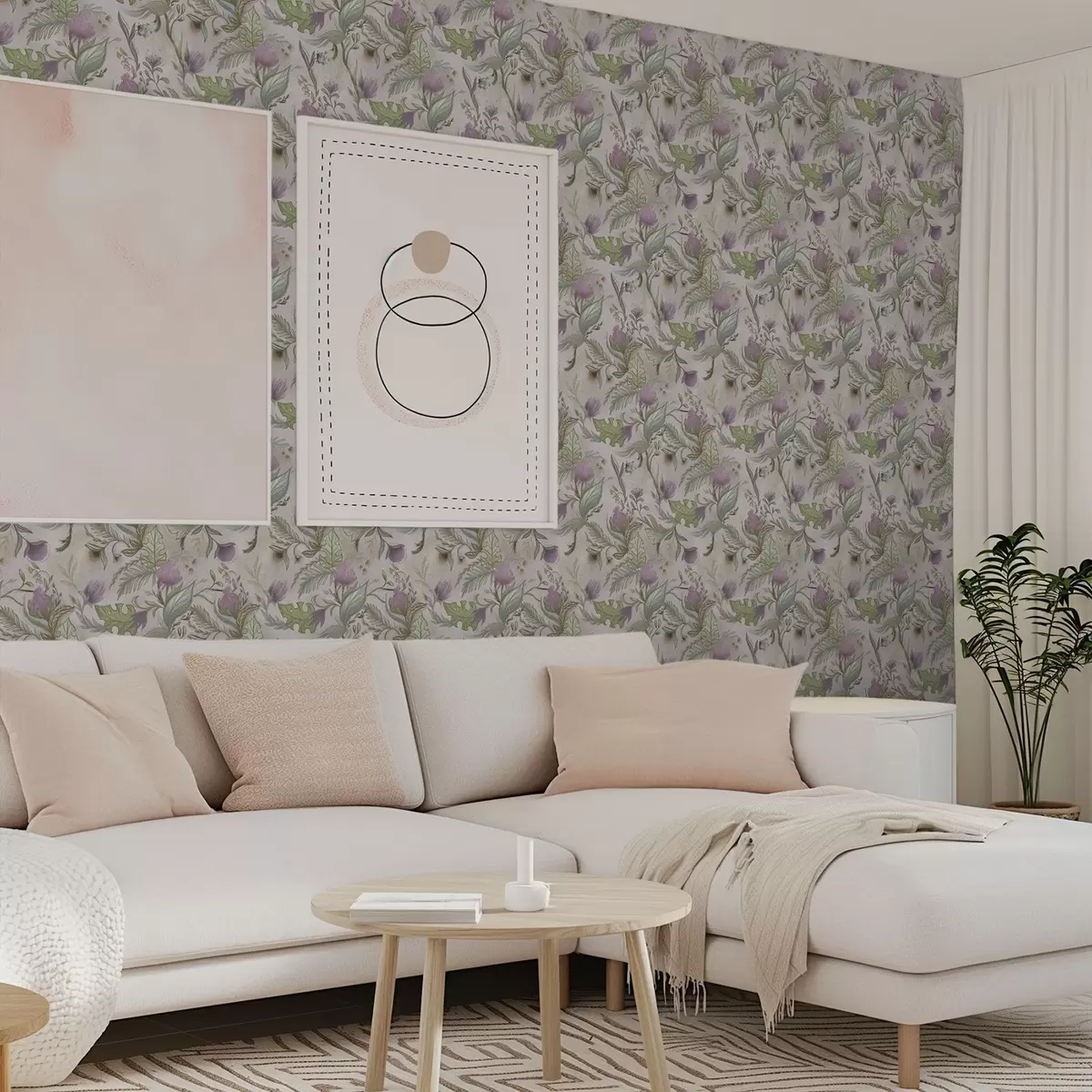 Tapeta Lila divoké kvety a listy na práškovom pozadí Nr. a00930v3