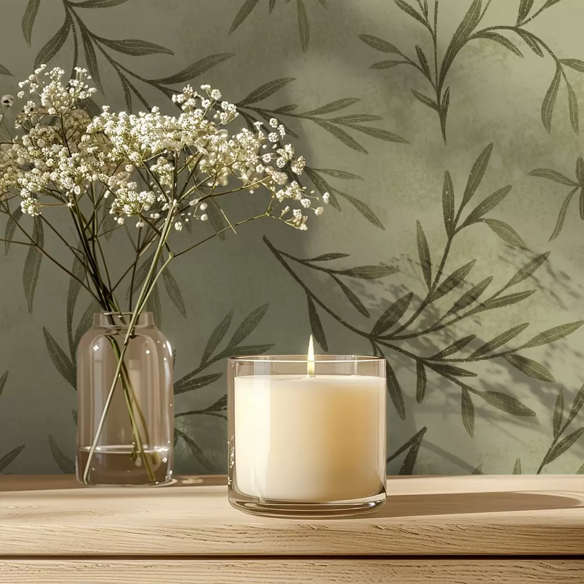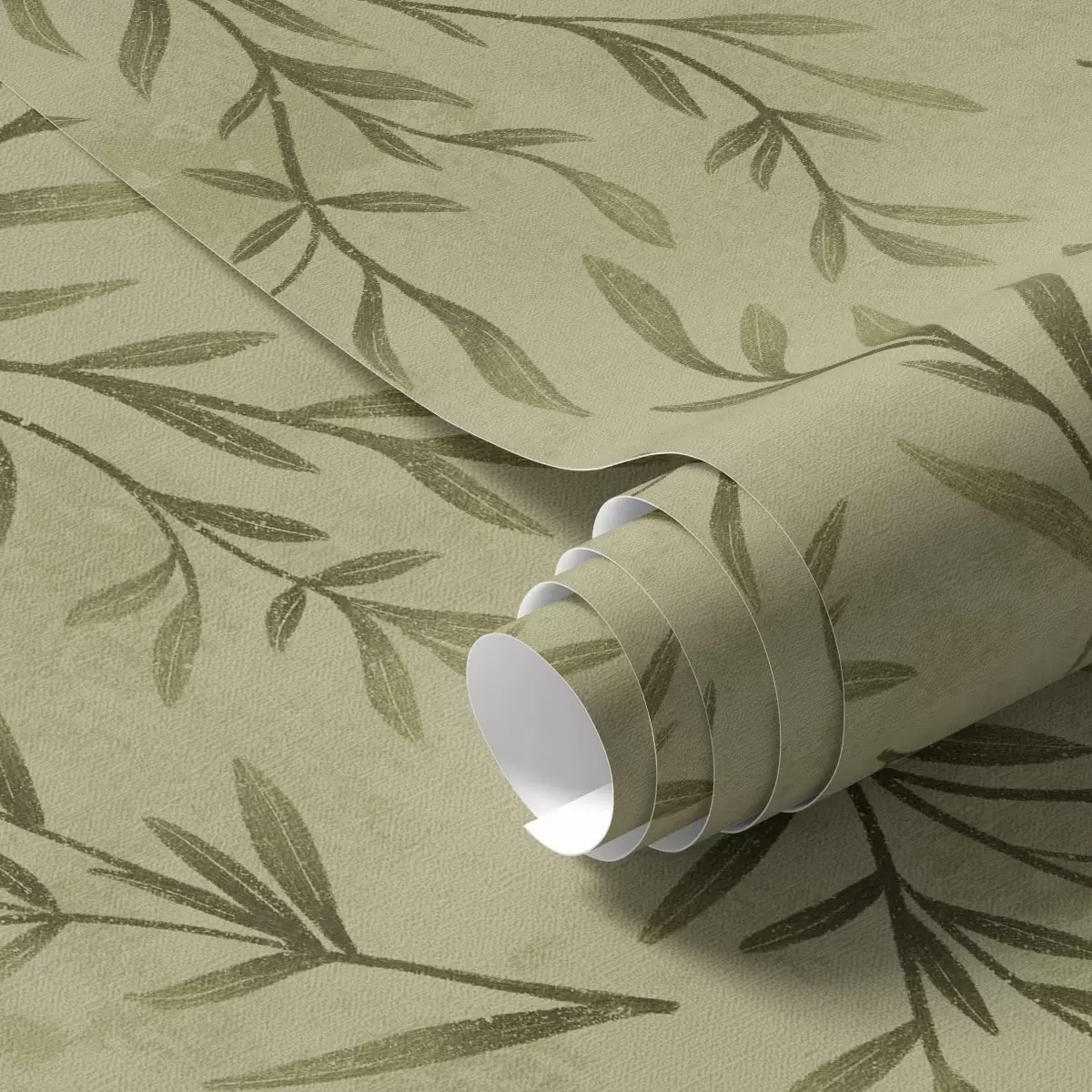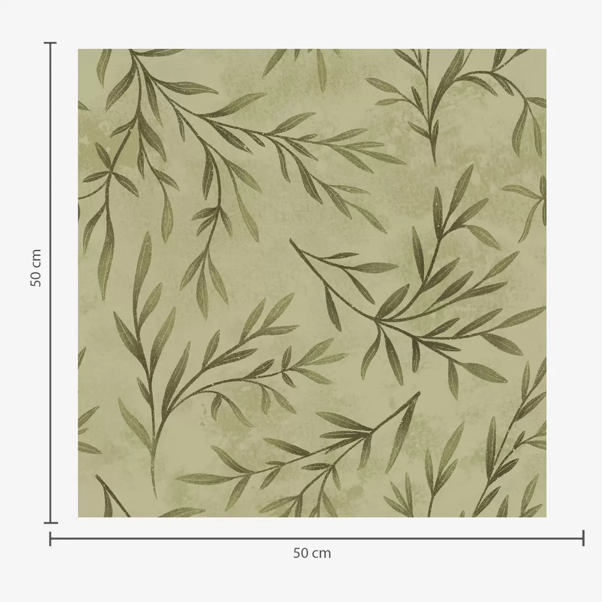 Tapeta Olivové vetvičky na tlmenom žltozelenom textúrovanom pozadí Nr. a00936
