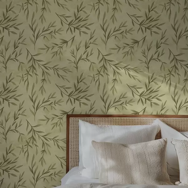 Tapeta Olivové vetvičky na tlmenom žltozelenom textúrovanom pozadí Nr. a00936
