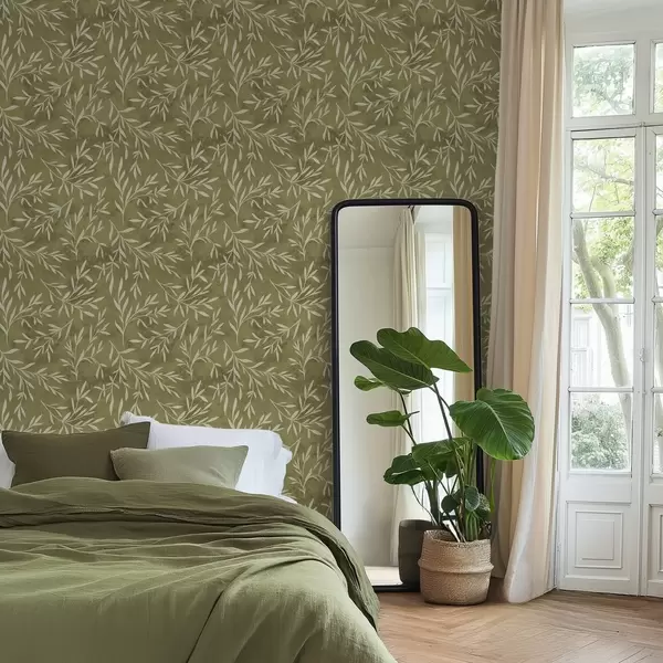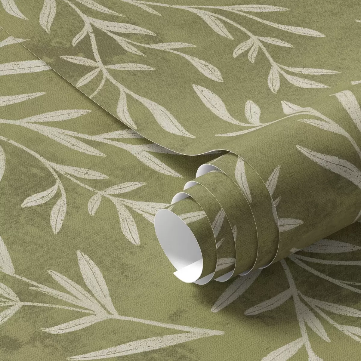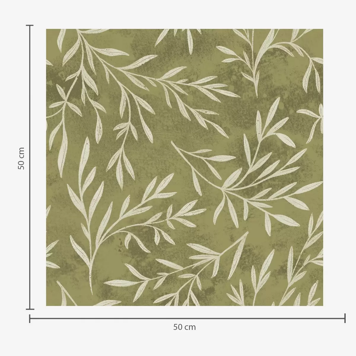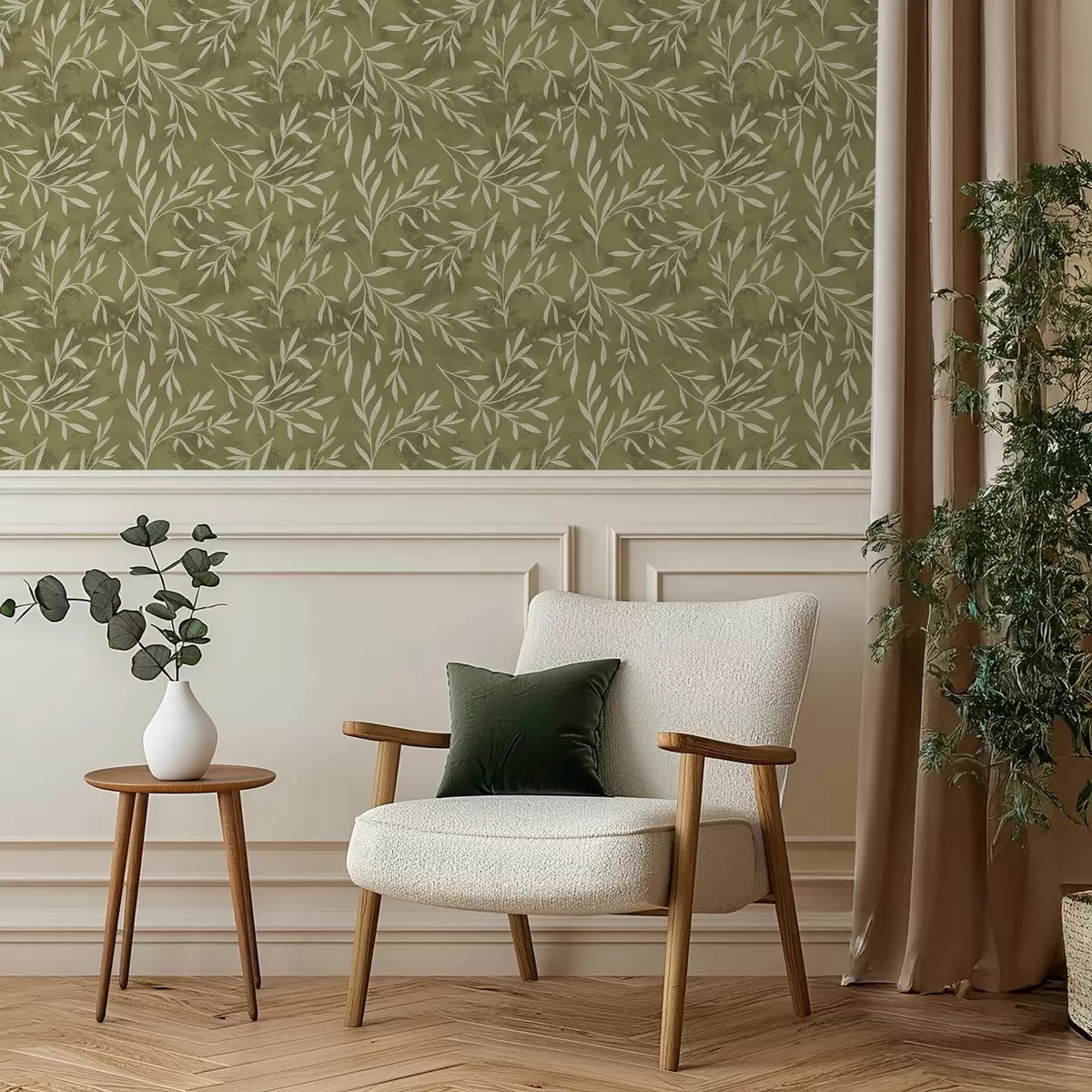 Tapeta Krémovo biele vetvičky na teplom olivovom textúrovanom pozadí Nr. a00936v1