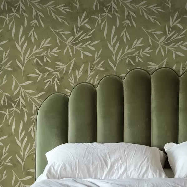 Tapeta Krémovo biele vetvičky na teplom olivovom textúrovanom pozadí Nr. a00936v1