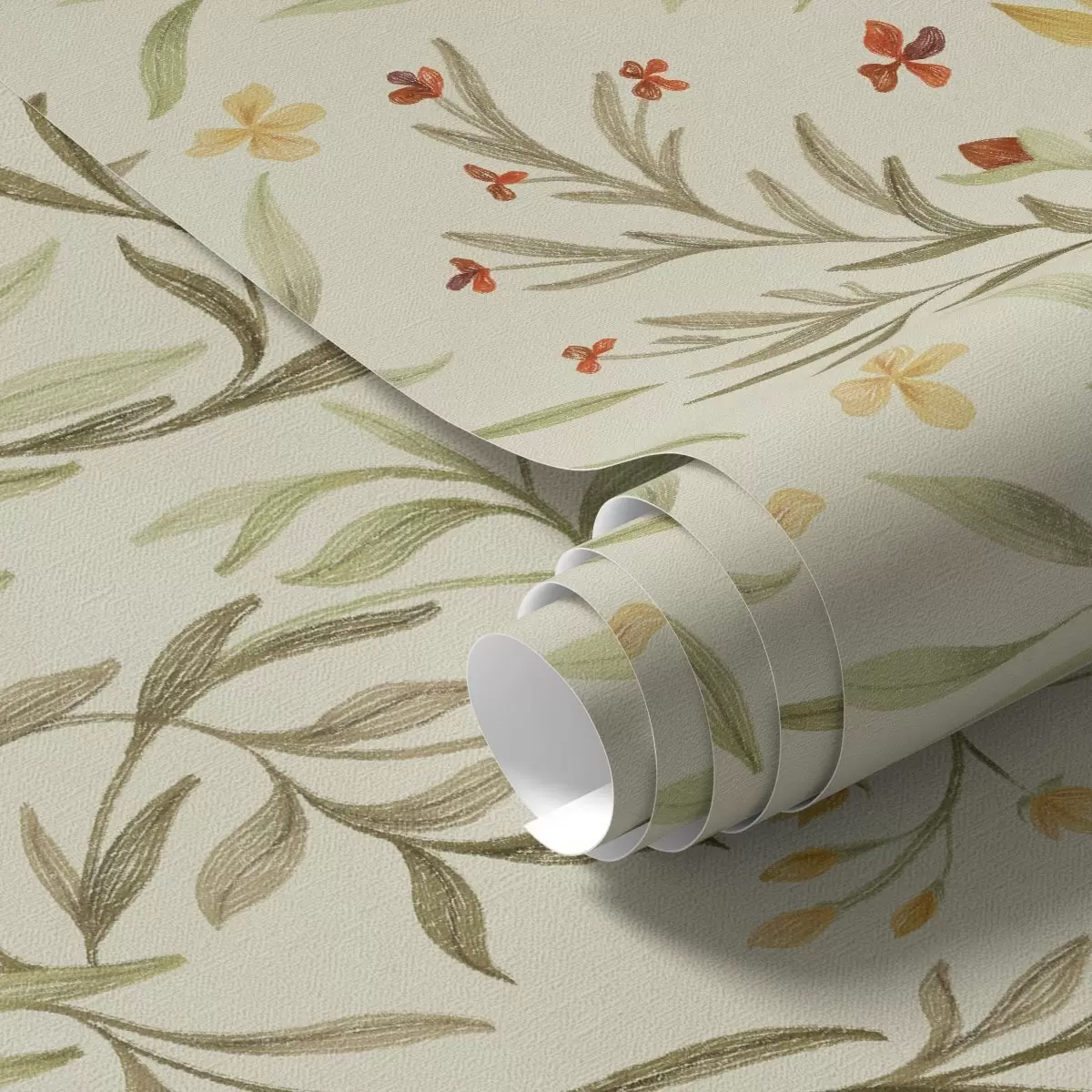 Tapeta Žlté a červené kvety na svetlozelenom pozadí Nr. a00937