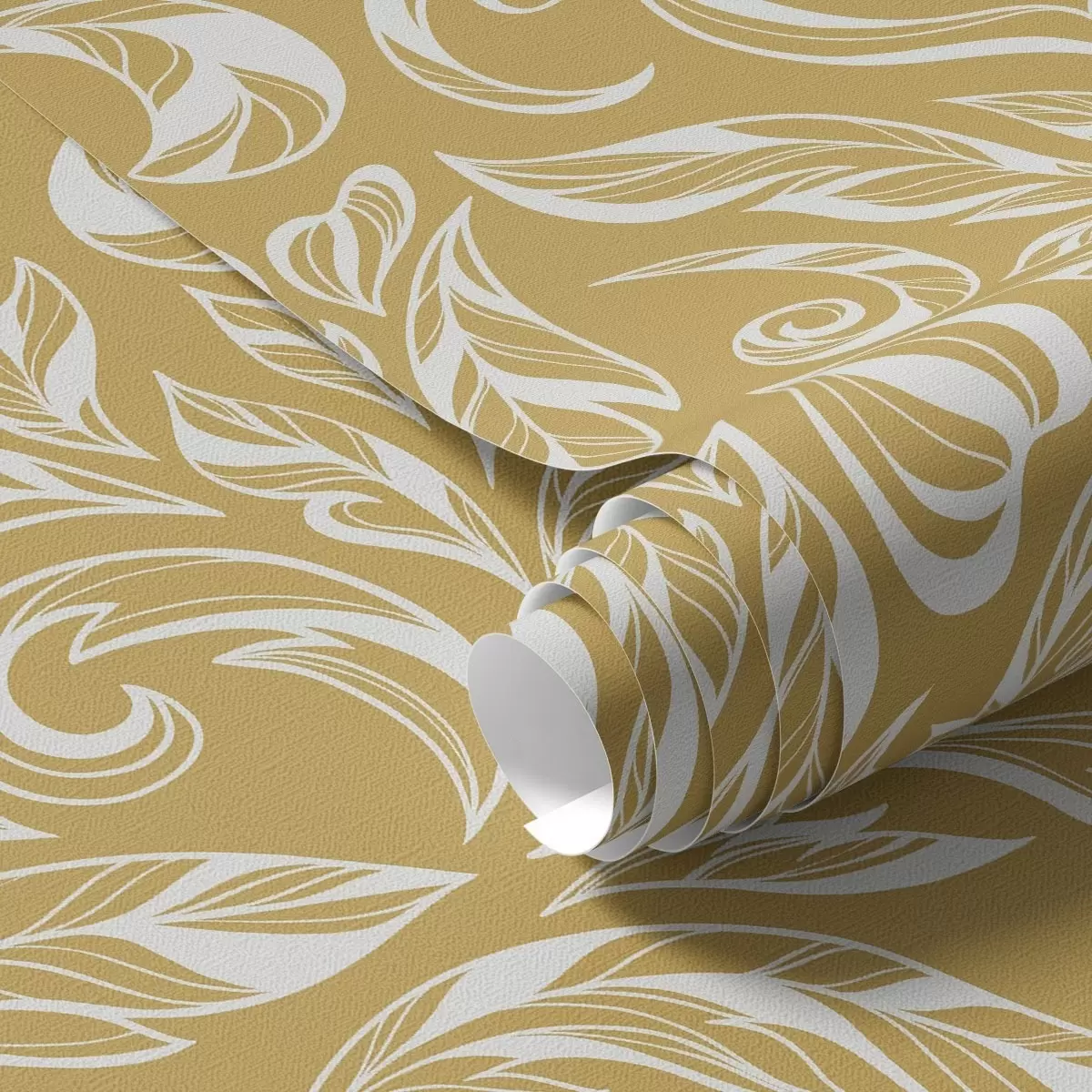 Tapeta Krémovo-biely listový ornament na teplom okrovom pozadí Nr. a00940v1