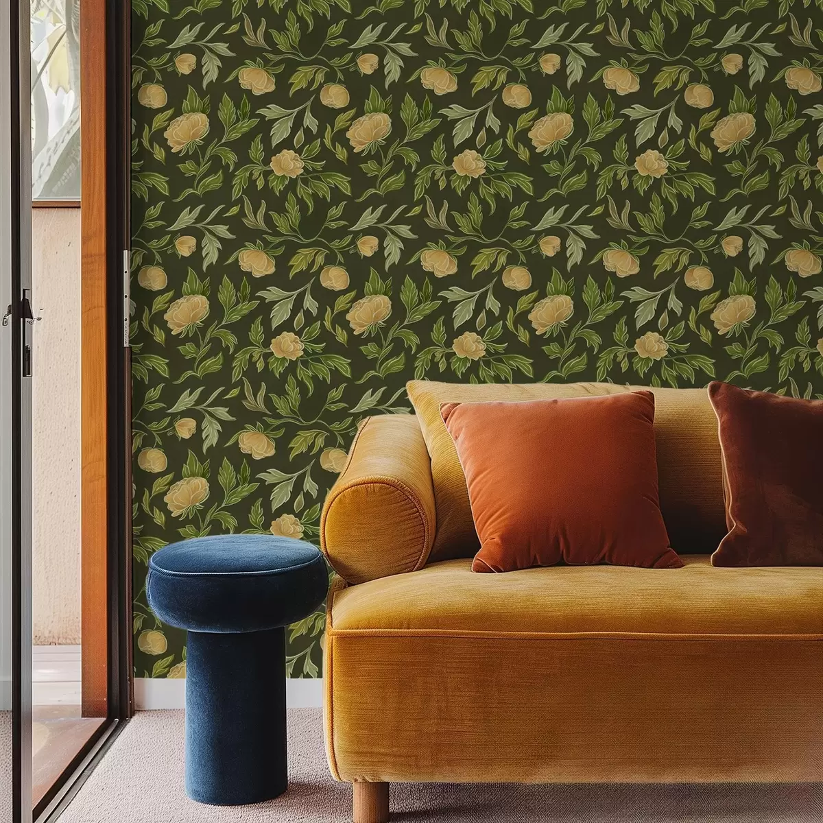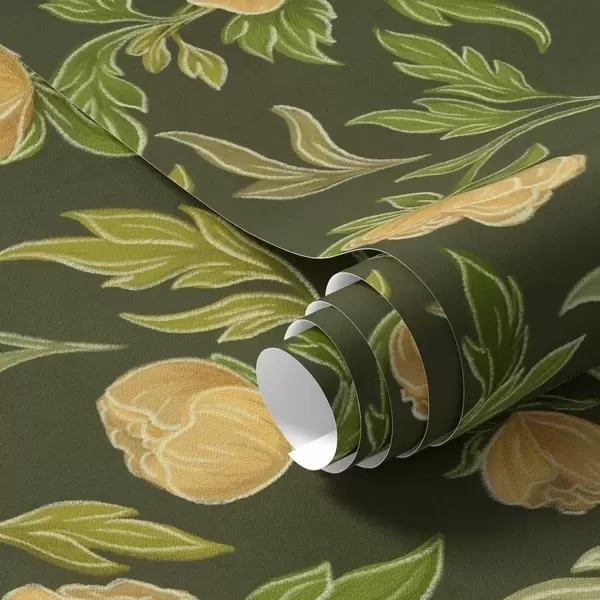 Tapeta Žlté pivonky na sýtom tmavozelenom pozadí Nr. a00942v1