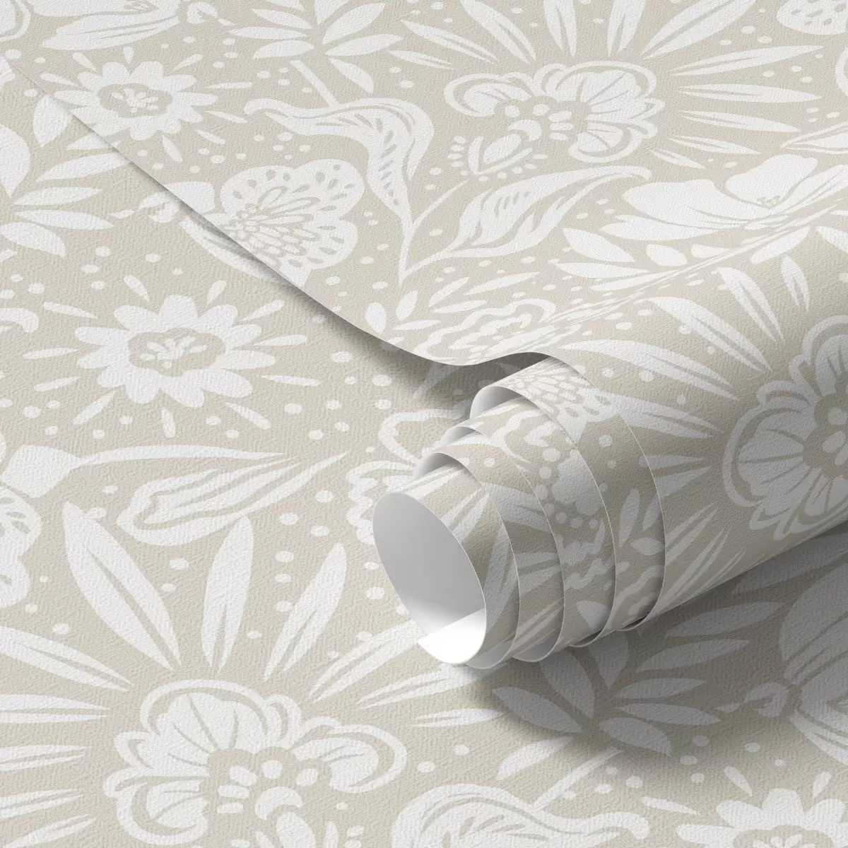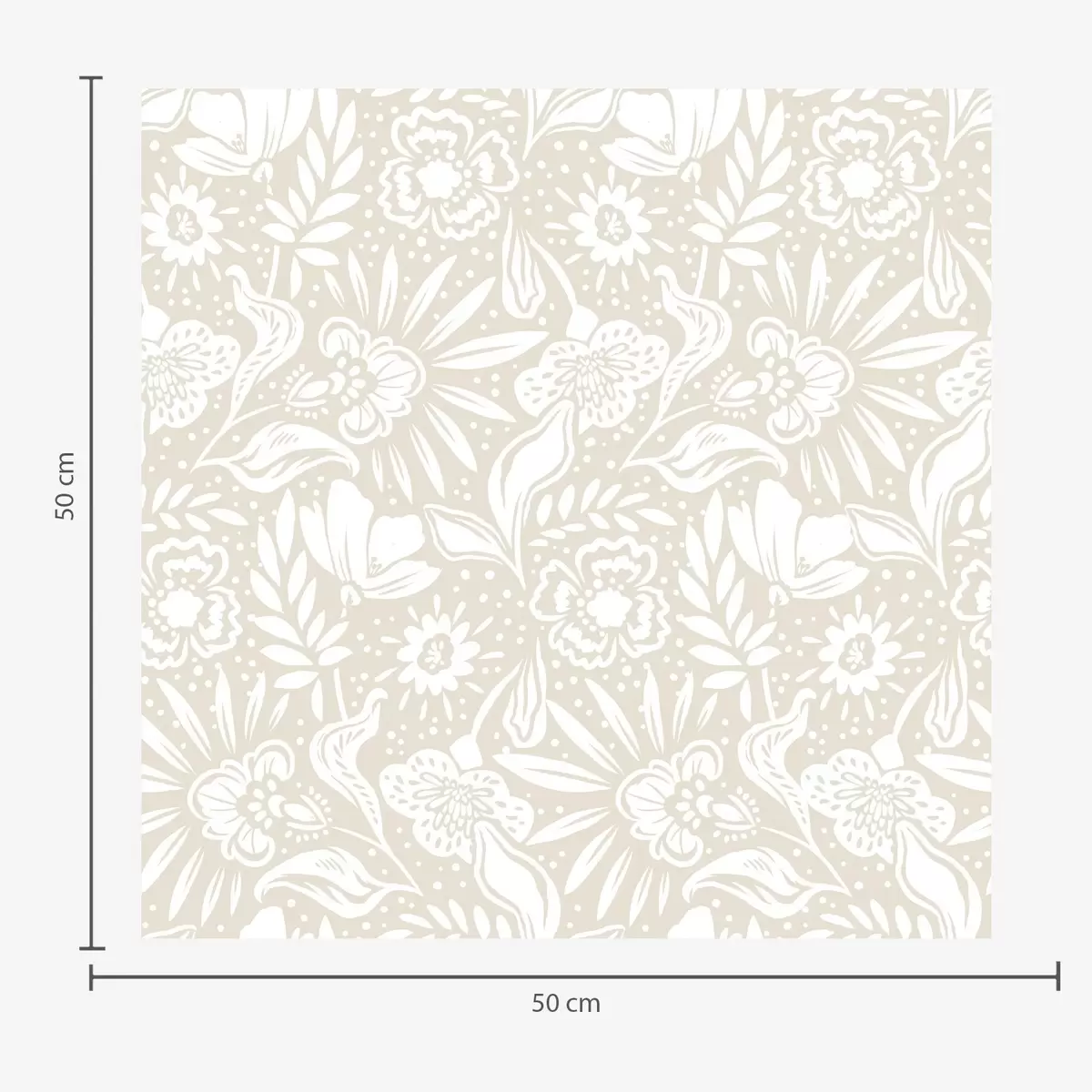 Tapeta Biely lineárny kvetinový ornament na béžovom pozadí Nr. a00956