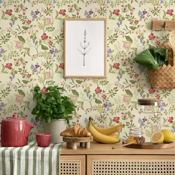 Tapeta Kvitnúca záhrada s bobuľami, hrozno a divokými kvetmi Nr. a00961