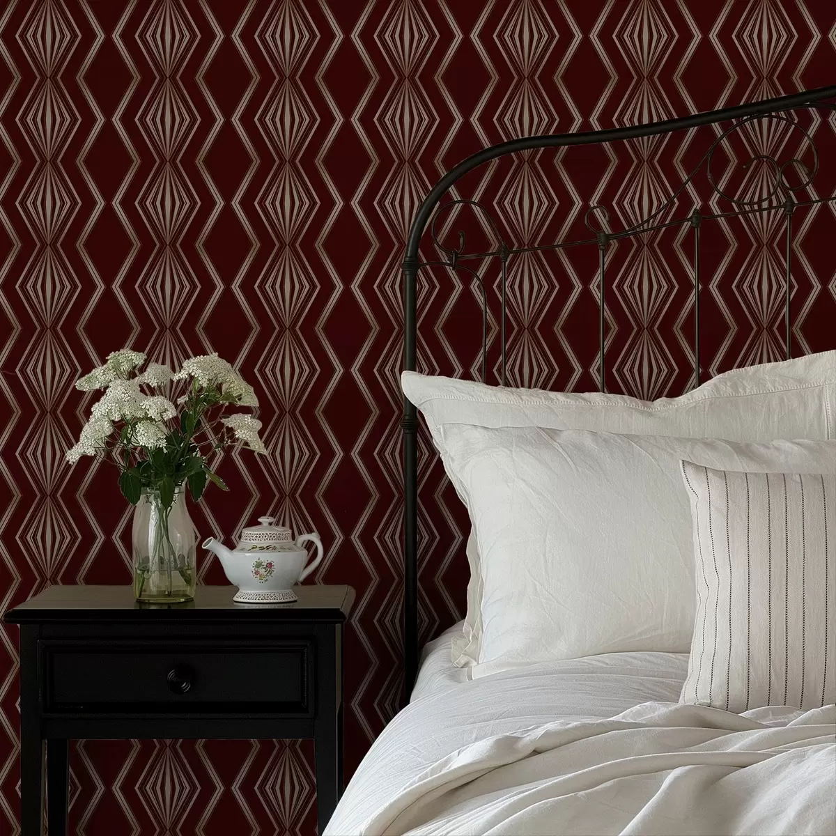Tapeta Burgundské pozadie s rytmickými kosoštvorcami a cikcakovými čiarami Nr. a00974
