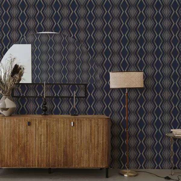 Tapeta Tmavomodré pozadie s geometrickými kosoštvorcami a cikcakmi Nr. a00974v2