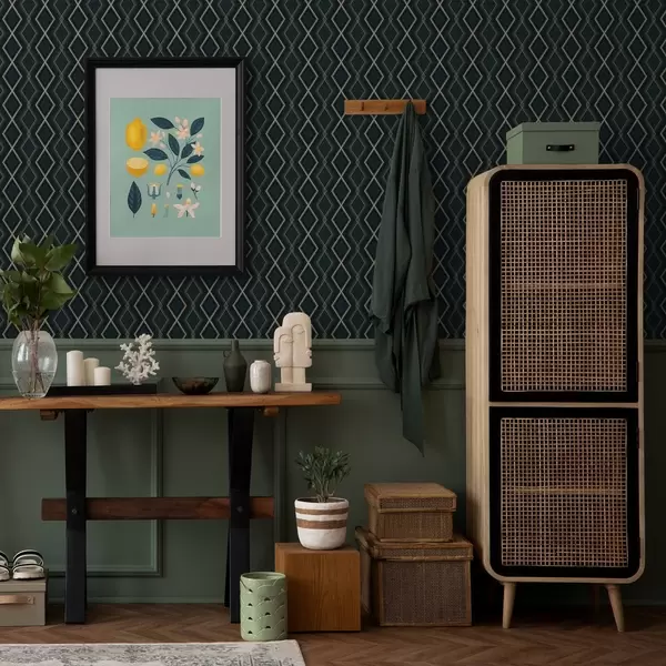 Tapeta Tmavo modrozelené pozadie s opakujúcou sa diamantovou mriežkou Nr. a00975v1