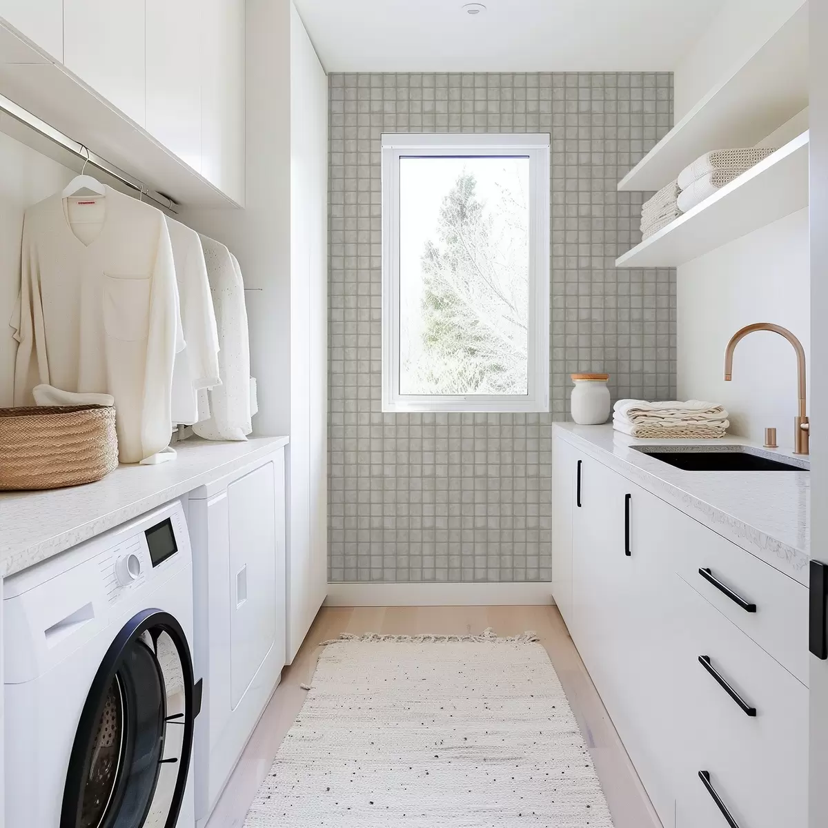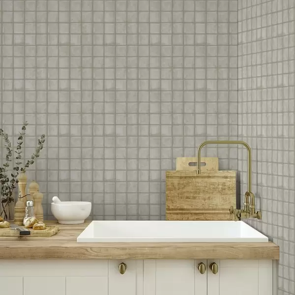Tapeta Imitácia štvorcových dlaždíc v jemnej šedo-zelenej farebnej palete Nr. a00988