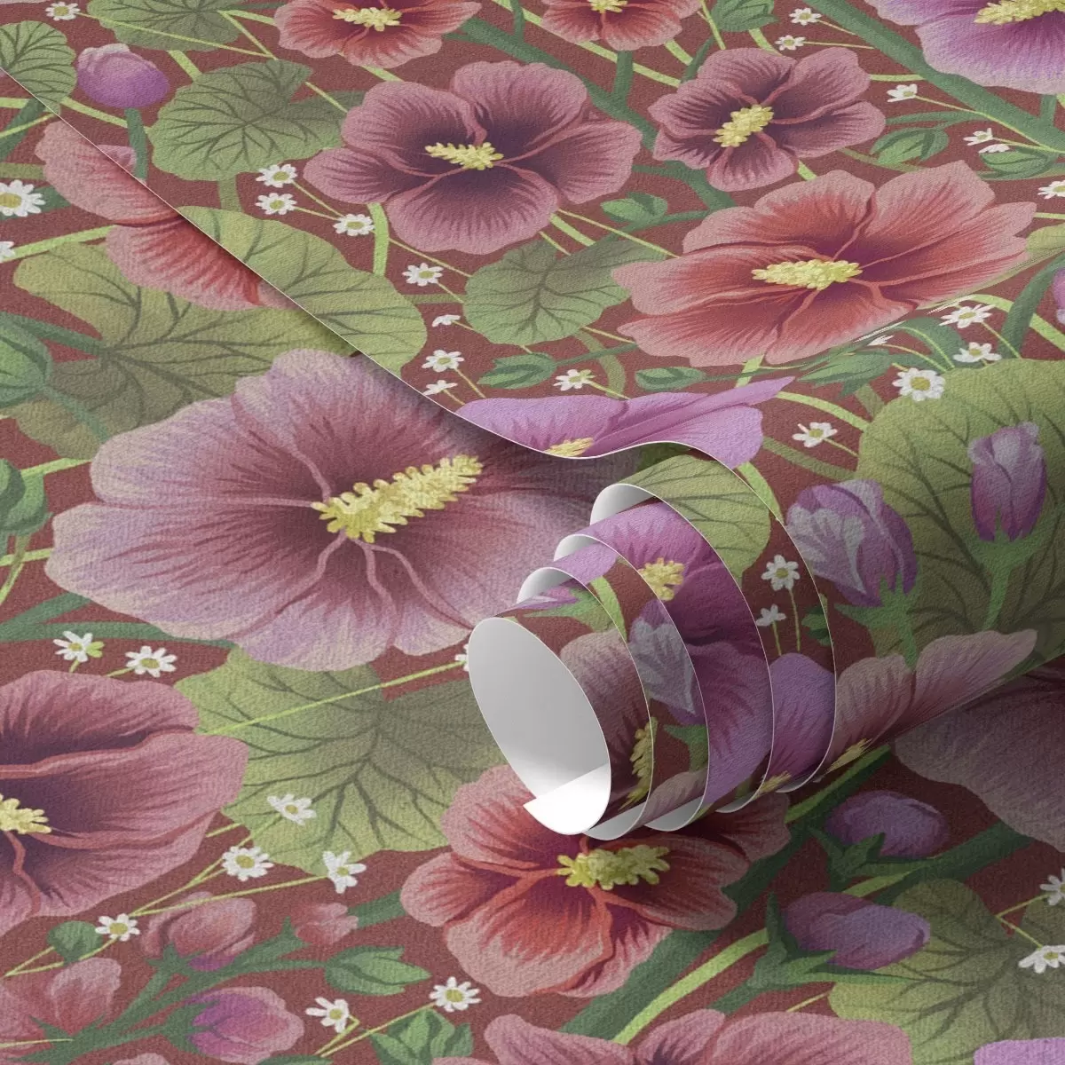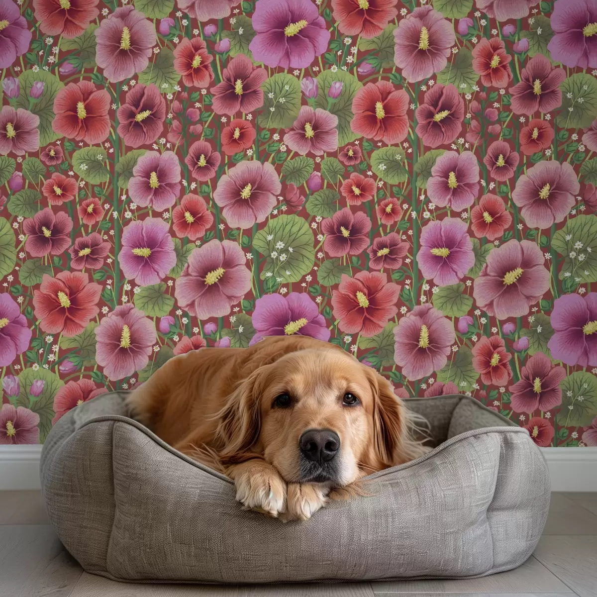 Tapeta Kvitnúci ibištek na teplom hnedočervenom pozadí Nr. a00993v1