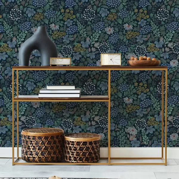 Tapeta Nočná záhrada s modrými ľaliami, bobuľami a divokou zeleňou Nr. a00996