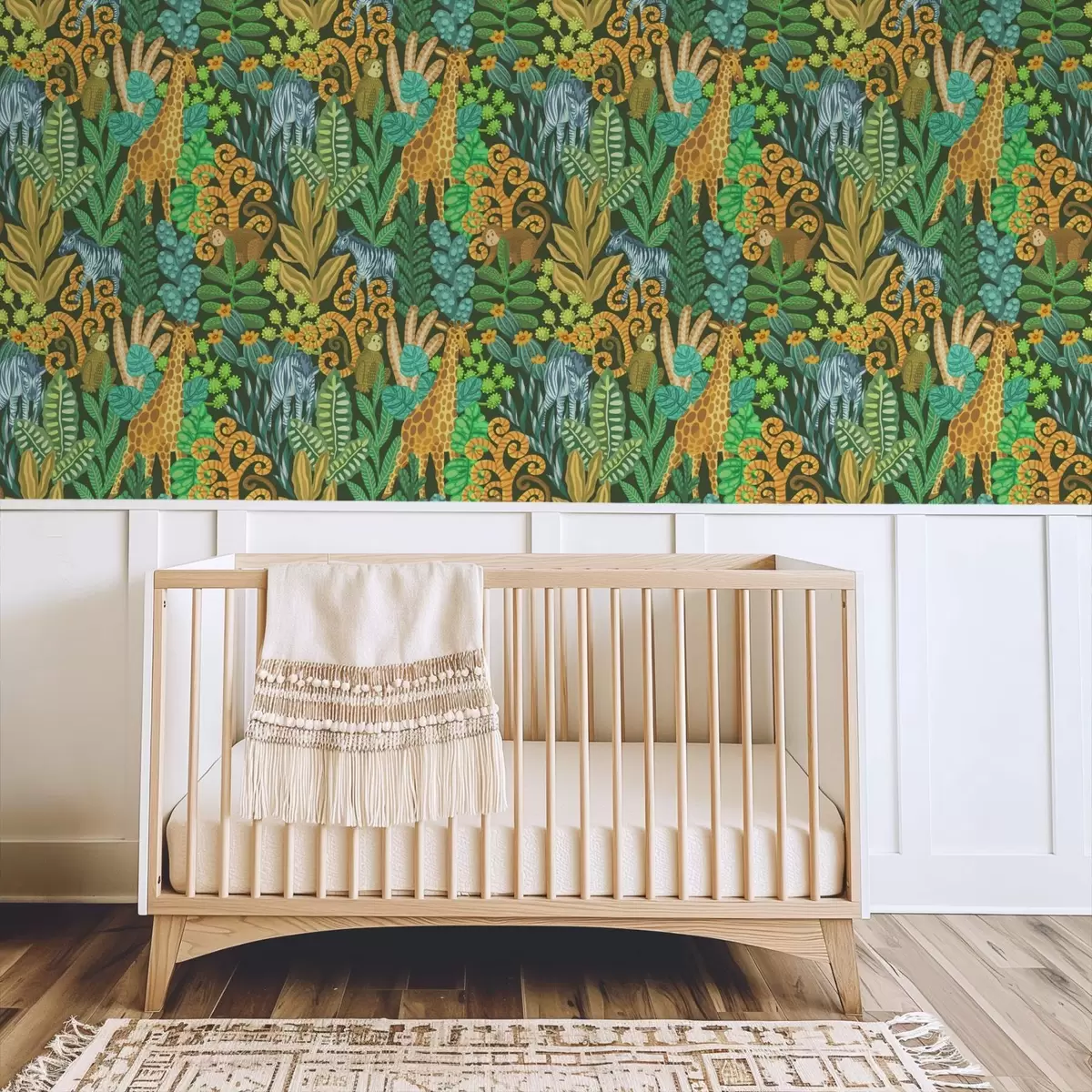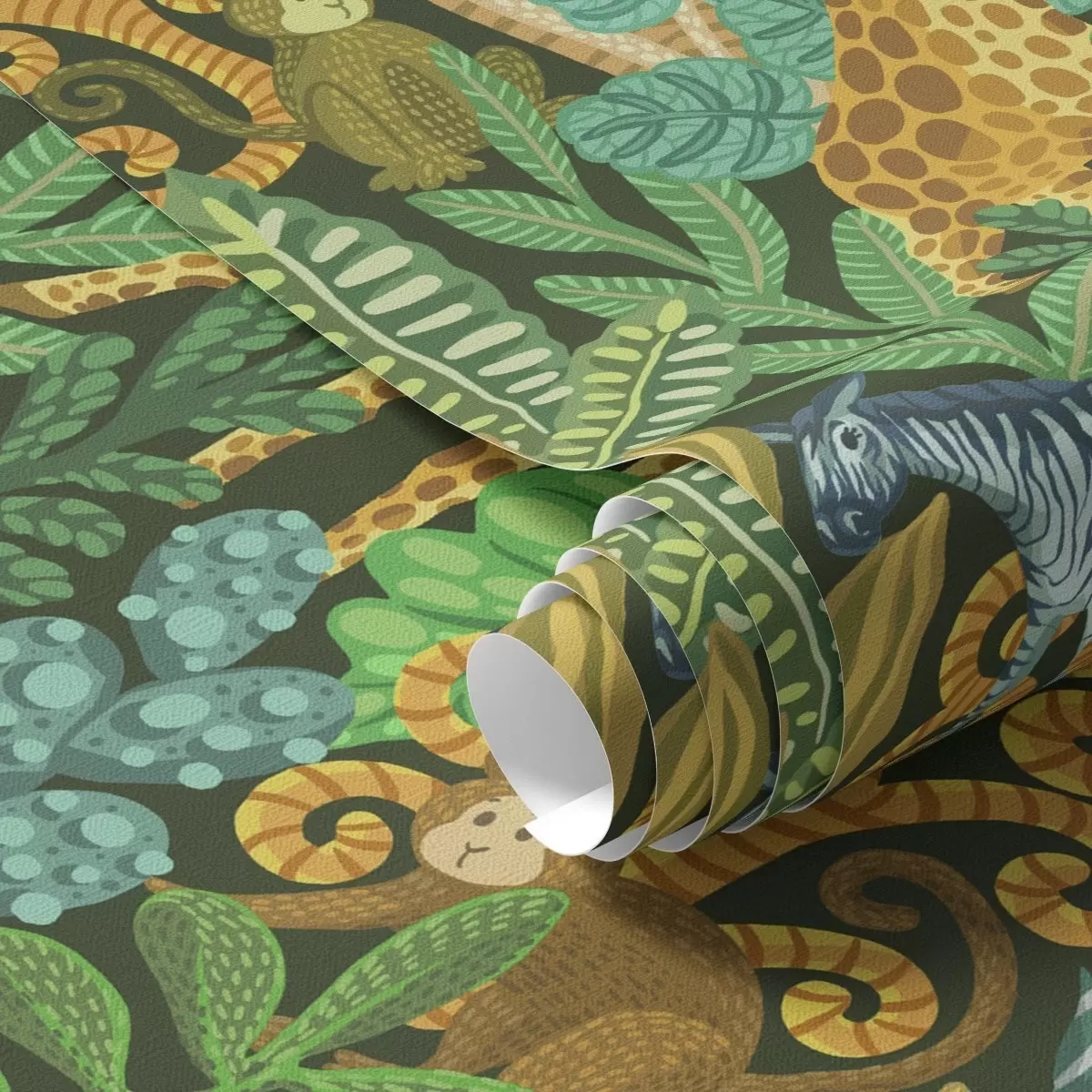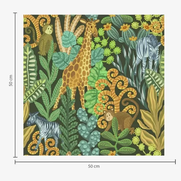 Tapeta Hustá džungľa so zvieratami na tmavozelenom pozadí Nr. a01000v2