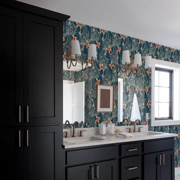 Tapeta Koi ryby plávajúce medzi dramatickými oceánskymi vlnami Nr. a01019