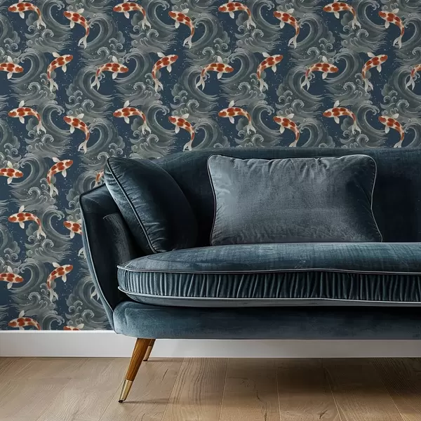 Tapeta Koi ryby plávajúce medzi dramatickými oceánskymi vlnami Nr. a01019
