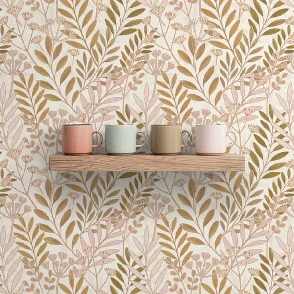 Tapeta Ľahký botanický vzor s jemnými ružovými a ovsenými odtieňmi listov Nr. a01020v1