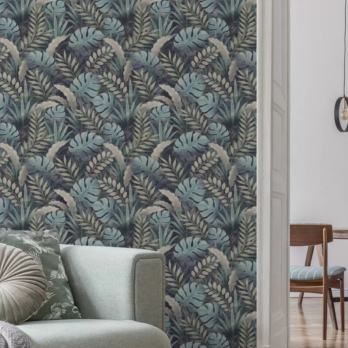 Tapeta Tropická zeleň v chladných modrozelených odtieňoch Nr. a01035