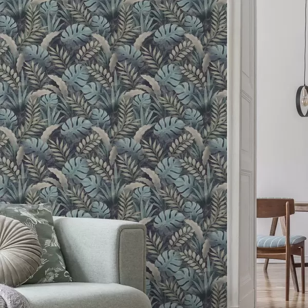 Tapeta Tropická zeleň v chladných modrozelených odtieňoch Nr. a01035