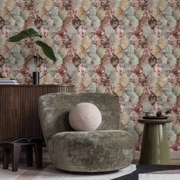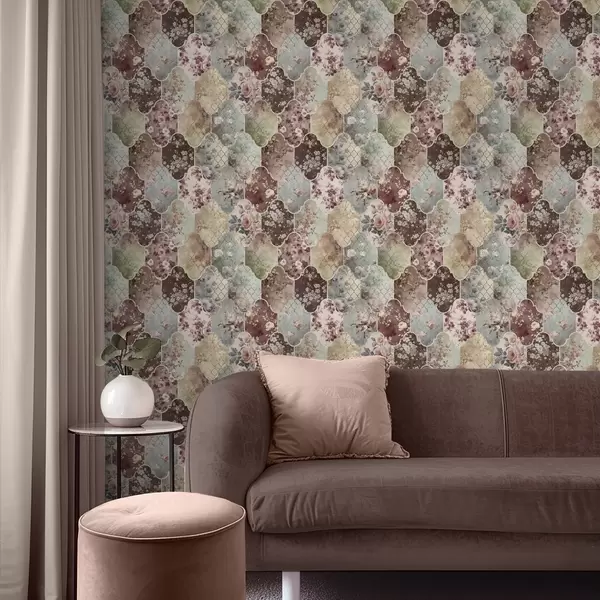 Tapeta Mozaika z kvetinových panelov a opotrebovaných vzorovaných dlaždíc Nr. a01038