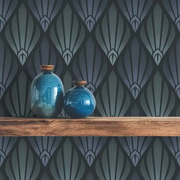 Tapeta Chladná modro-sivá Art Deco s vejárovitými tvarmi Nr. a01064v3