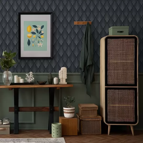 Tapeta Chladná modro-sivá Art Deco s vejárovitými tvarmi Nr. a01064v3