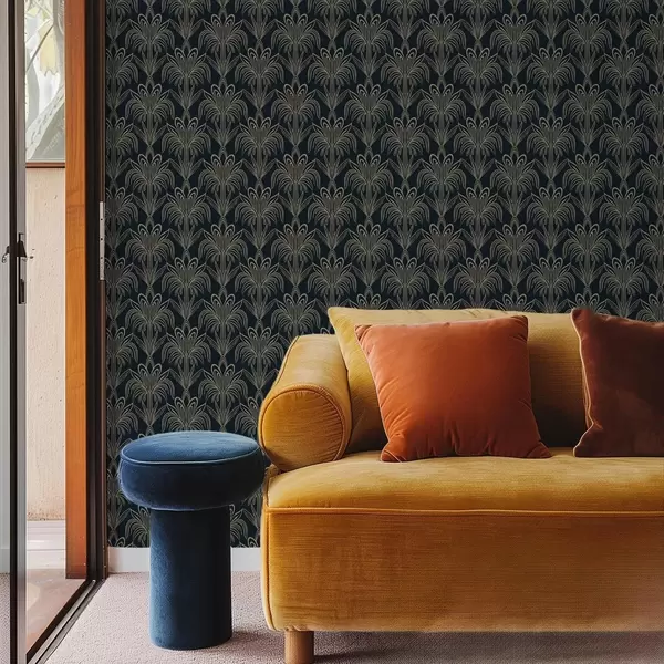 Tapeta Tmavý art deco ornament so štýlizovanými rastlinami Nr. a01065