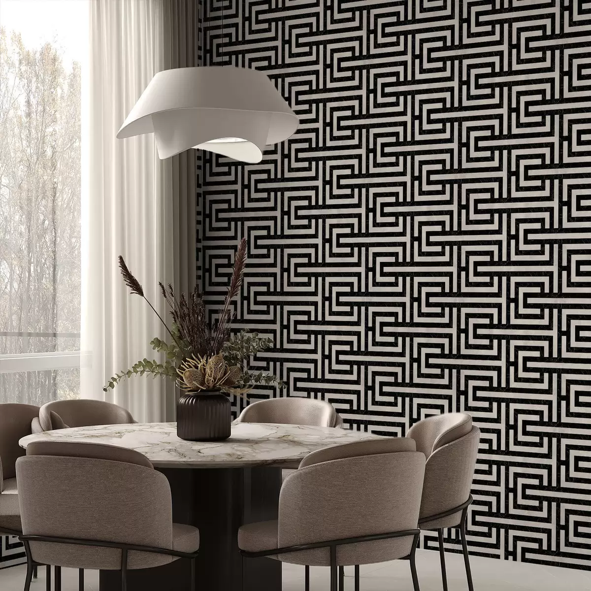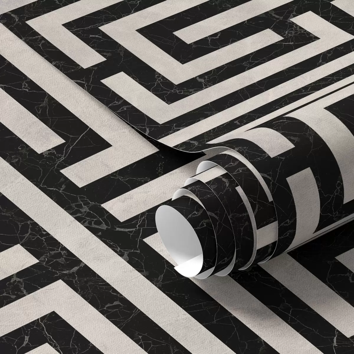 Tapeta Čierno-biely geometrický bludiskový vzor Nr. a01073