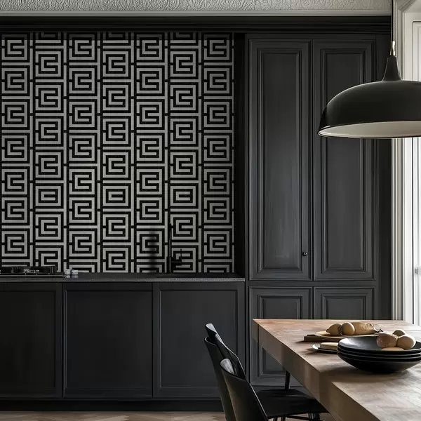 Tapeta Čierno-biely geometrický bludiskový vzor Nr. a01073