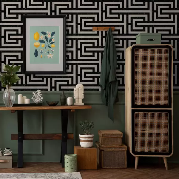Tapeta Čierno-biely geometrický bludiskový vzor Nr. a01073