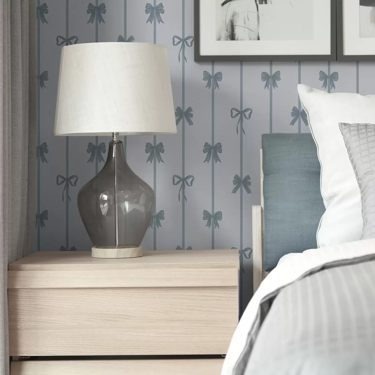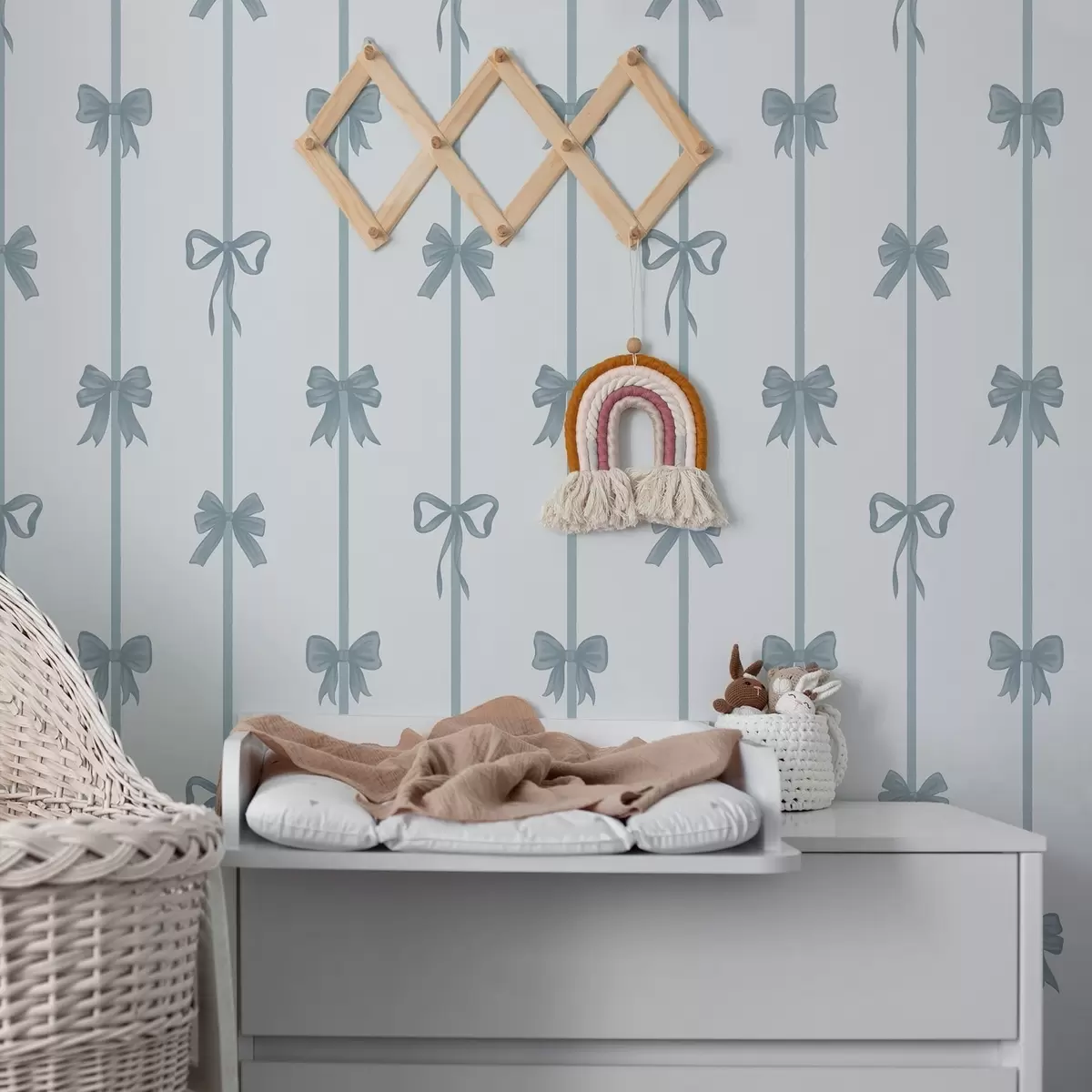 Tapeta Modré mašle so stuhami na svetlom pozadí Nr. a01074v2