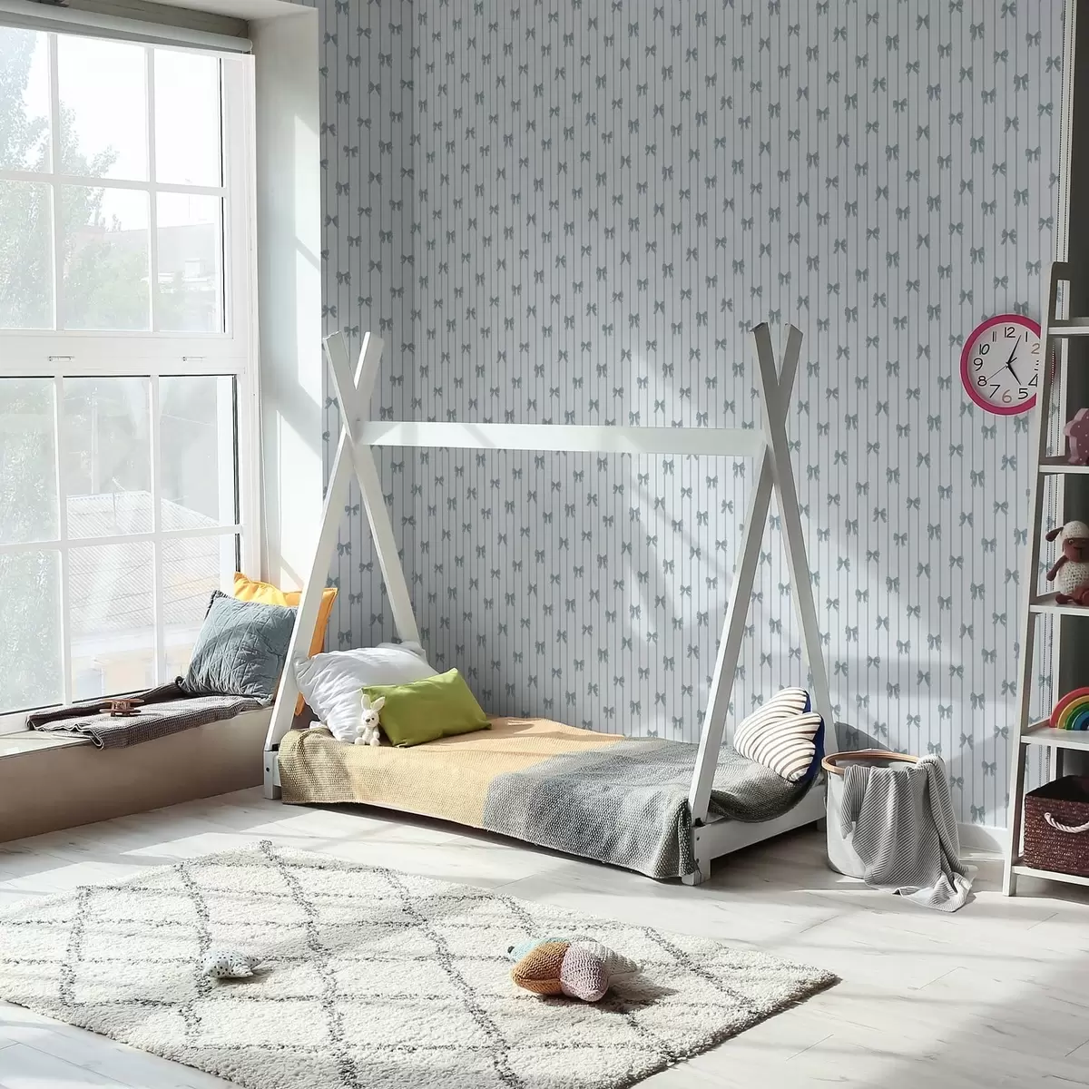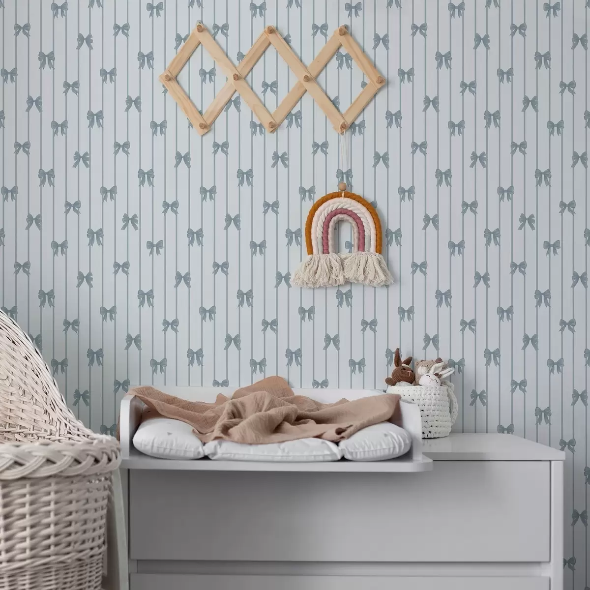 Tapeta Svetlý pruhovaný vzor so stuhami a mašľami Nr. a01076v3