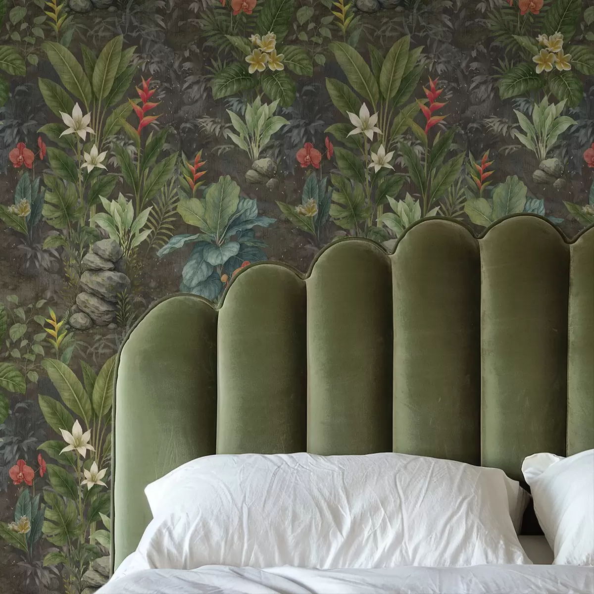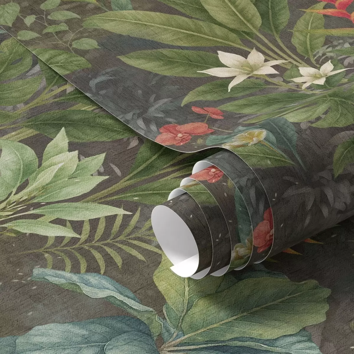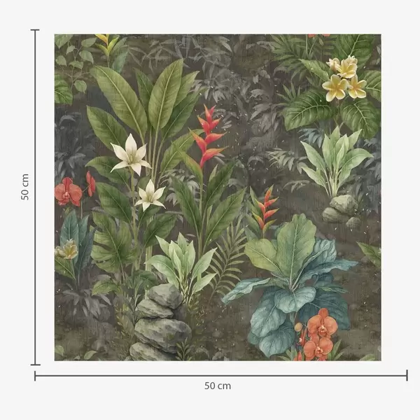 Tapeta Tmavá tropická záhrada s jasnými kvetmi a zeleňou Nr. a01079